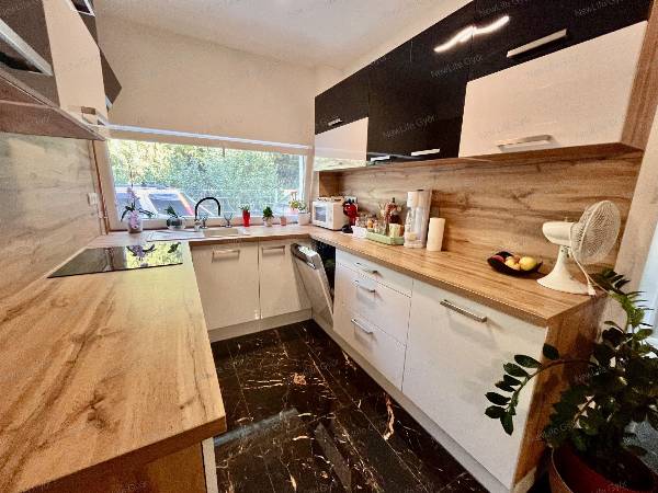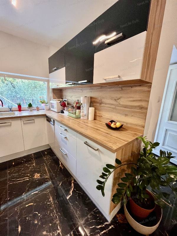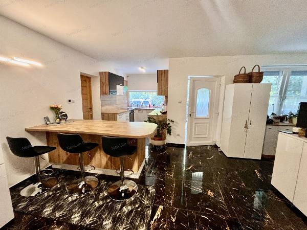 Ha szereti a békét és a nyugalmat.... Ha mindig is falusias környezetben szeretett volna élni..... Ha kell az élettér, hogy mindenkinek meglegyen a saját kis közege a családi fészken belül... Akkor ne habozzon, ez a ház mindenkinek tetszeni fog! Megvételre kínálok egy komplett felújításon átesett családi házat Rábapatona egyik természetközeli, csendes utcájában. A ház 102 nm-es alapterülettel rendelkezik. Felosztása: Amerikai konyhás nappali 3 hálószoba fürdőszoba mosdó hatalmas lapozott terasz, ahonnan a melléképületekhez (garázs,tároló,pince) jutunk A ház a '60-as években épült, kisméretű téglából. 2024/25-ben pedig teljeskörű felújításon esett át.Ennek keretében falig lett bontva a ház.Az összes vezeték újra lett húzva, új műanyag nyílászárók kerültek beszerelésre ( az ablakok redőnnyel és szúnyoghálóval vannak ellátva). A padlón szigetelés és padlófűtés került elhelyezésre. A házba be lett vezetve a gáz is, így a padlófűtés mellett radiátoros hőleadók is vannak minden szobában. Minden szobában van termosztát, mellyel a padlófűtést szobánként lehet szabályozni, beállítani. A hűtő-fűtő klíma előkészítése megtörtént, maga a klíma a napokban kerül beszerelésre. A ház szigetelt. Az utcafrontról 20 cm-es szigetelést kapott, míg az oldalfalakon 15-15 cm van. A födém fafödémes, melyen szintén szigetelés van. 15+10cm-es kőzetgyapot szigetelés van. A tető lemezből van. A házba belépve az amerikai konyhás nappaliba jutunk. A nappali járólapozott, mely alatt elektromos padlófűtés van, ezen kívül radiátoros hőleadó és hűtő-fűtő klíma is található. A ház éke a konyha,mely modern, igényesen kivitelezett. Beépített mosogatógép, sütő, főzőlap és szagelszívó lett a konyhabútorba beépítve. A háziasszonyok kedvence a konyhában található ablak, mely előtt nagy pult és a gránitmosogató is van. A három hálószobából 2 nagyon nagy, egyenként 22-22 nm-es, mindkettő az előkertre néz. A harmadik hálószoba közvetlen kertkapcsolatos. Az áram erőssége 3*25 A. A ház mellett két melléképület is található, valamint egy pincehelység. A 26 nm-es garázsban található a gázkazán, illetve még egy mosdó, ahol egy kis mosókonyha is kialakítható. A kert csodálatos, a fedett terasz alatt pedig az év bármely részében van lehetőség családi beszélgetésekre, ebédek,vacsorák megvalósítására. A kert parkosított, rengeteg örökzöld ékesíti. A kert teljesen körbekerített, dupla utcafrontú. A méretének köszönhetően pedig megosztható. Egy 900nm-es rész le is lett választva, mely akár befektetésnek vagy értékesítésnek is kiváló. A 900nm-es telekre egy lakóingatlan építhető-akár ikerház is. Kertben ásott kút található. A ház tehermentes. Ha szeretné megtekinteni, keressen bizalommal!