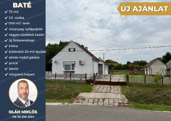 Eladóvá vált egy folyamatosan karbantartott, téglaépítésű családi ház Batéban, mindössze 12 km-re Kaposvártól. Az ingatlan 72 m²-es, jól átgondolt elosztással: három szoba, egy kisszoba, tágas konyha étkezővel, valamint fürdőszoba WC-vel és egy hangulatos, kisebb fedett terasz teszi igazán otthonossá. A ház az elmúlt években több felújításon is átesett, így az új tulajdonosnak szinte csak költöznie kell. 2023-ban teljesen megújult a fűtésrendszer: új vegyestüzelésű kazán, új fűtési csővezeték és radiátorok kerültek beépítésre, továbbá egy modern hűtő-fűtő klíma is beszerelésre került. A nyílászárók korszerű, műanyag ablakok, szúnyoghálóval és redőnnyel felszerelve, a bejárat pedig masszív acél ajtót kapott. A szobákban padlószőnyeg, a többi helyiségben pedig új hidegburkolat található. A ház egy 1300 m²-es telken helyezkedik el, amely számos lehetőséget kínál: aknás mobil garázs, egy 20 m²-es különálló épület, praktikus kerti kiülő, pince és több tárolóhelyiség is rendelkezésre áll. Az ingatlan derítővel ellátott, a gázcsonk az udvarban megtalálható, így igény esetén a gáz könnyedén bevezethető. Kiváló választás mindazok számára, akik Kaposvár közelségében keresnek nyugodt, barátságos környezetben található, azonnal költözhető otthont. Ez a ház ideális választás mindazoknak, akik Kaposvár közelségét, ugyanakkor a nyugodt, falusi környezetet keresik. Ha egy szerethető, jól karbantartott otthont keres tágas telekkel és számos lehetőséggel, itt megtalálhatja! AMENNYIBEN TOVÁBBI KÉRDÉSEI LENNÉNEK AZ INGATLANNAL KAPCSOLATBAN VAGY ESETLEG SZEMÉLYESEN IS MEGTEKINTENÉ KÉREM KERESSEN BIZALOMMAL AZ ALÁBBI ELÉRHETŐSÉGEIMEN. I.ár.: 29,9 M Ft Érd: +36302562334 https://genius99.hu/Elado_csaladi_haz_Bate/6706993/ Azonosító: E-517 AMENNYIBEN A VÁSÁRLÁSHOZ HITELFELVÉTELRE LENNE SZÜKSÉGE, ÚGY AZ ELŐZETES IGÉNYFELMÉRÉST, BANKI AJÁNLATOK BESZERZÉSÉT VALAMINT A TELJES ÜGYINTÉZÉST INGYENESEN VÁLLALJUK !! A weboldalon szereplő információk (képek, szövegek ... stb.) teljes mértékben a szerző jogi tulajdonát képezik. A weboldalon szereplő információkat, adatokat másolni, felhasználni csak a szerző előzetes engedélyével lehetséges.