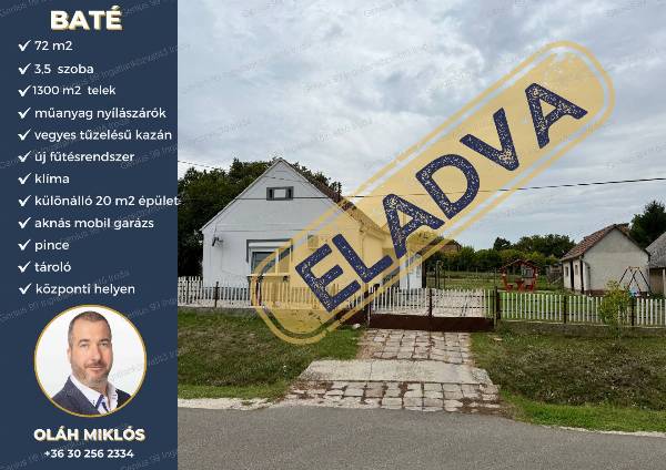 ELADVA !!! Eladóvá vált egy folyamatosan karbantartott, téglaépítésű családi ház Batéban, mindössze 12 km-re Kaposvártól. Az ingatlan 72 m²-es, jól átgondolt elosztással: három szoba, egy kisszoba, tágas konyha étkezővel, valamint fürdőszoba WC-vel és egy hangulatos, kisebb fedett terasz teszi igazán otthonossá. A ház az elmúlt években több felújításon is átesett, így az új tulajdonosnak szinte csak költöznie kell. 2023-ban teljesen megújult a fűtésrendszer: új vegyestüzelésű kazán, új fűtési csővezeték és radiátorok kerültek beépítésre, továbbá egy modern hűtő-fűtő klíma is beszerelésre került. A nyílászárók korszerű, műanyag ablakok, szúnyoghálóval és redőnnyel felszerelve, a bejárat pedig masszív acél ajtót kapott. A szobákban padlószőnyeg, a többi helyiségben pedig új hidegburkolat található. A ház egy 1300 m²-es telken helyezkedik el, amely számos lehetőséget kínál: aknás mobil garázs, egy 20 m²-es különálló épület, praktikus kerti kiülő, pince és több tárolóhelyiség is rendelkezésre áll. Az ingatlan derítővel ellátott, a gázcsonk az udvarban megtalálható, így igény esetén a gáz könnyedén bevezethető. Kiváló választás mindazok számára, akik Kaposvár közelségében keresnek nyugodt, barátságos környezetben található, azonnal költözhető otthont. Ez a ház ideális választás mindazoknak, akik Kaposvár közelségét, ugyanakkor a nyugodt, falusi környezetet keresik. Ha egy szerethető, jól karbantartott otthont keres tágas telekkel és számos lehetőséggel, itt megtalálhatja! AMENNYIBEN TOVÁBBI KÉRDÉSEI LENNÉNEK AZ INGATLANNAL KAPCSOLATBAN VAGY ESETLEG SZEMÉLYESEN IS MEGTEKINTENÉ KÉREM KERESSEN BIZALOMMAL AZ ALÁBBI ELÉRHETŐSÉGEIMEN. I.ár.: 29,9 M Ft Érd: +36302562334 https://genius99.hu/Elado_csaladi_haz_Bate/6706993/ Azonosító: E-517 AMENNYIBEN A VÁSÁRLÁSHOZ HITELFELVÉTELRE LENNE SZÜKSÉGE, ÚGY AZ ELŐZETES IGÉNYFELMÉRÉST, BANKI AJÁNLATOK BESZERZÉSÉT VALAMINT A TELJES ÜGYINTÉZÉST INGYENESEN VÁLLALJUK !! A weboldalon szereplő információk (képek, szövegek ... stb.) teljes mértékben a szerző jogi tulajdonát képezik. A weboldalon szereplő információkat, adatokat másolni, felhasználni csak a szerző előzetes engedélyével lehetséges.