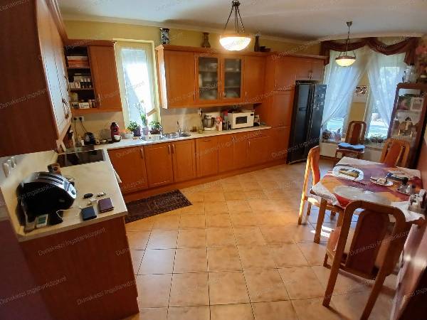Alacsony energia felhasználású! Dunakeszi egyik legjobb lakóparjában, kifogástalan állapotú, gyönyörű, gondozott, növényekkel beültetett, teljesen szeparált - külön utcából nyíló - saroktelken épült ikerház eladó. Kertben öntözőrendszer locsolómérővel, parkosított örökzöld növények, nagyméretű kerti tároló faház, garázs mellett több autó beállásra alkalmas térkövezett udvarrész. Nappaliból nagyméretű teraszon keresztül közvetlen kijárat az udvarra. Nagyon jó fekvésű, egész nap világos ingatlan. Hőszigetelt műanyag nyílászárók, minden ablakon MOTOROS REDŐNYÖK, SZÚNYOGHÁLÓ házban több helyen beépített gardrób szekrények, nagyméretű előszoba szekrény, fürdőszoba szekrény. Konyhabútor beépített SAMSUNG gépekkel (tűzhely, páraelszívó, mosogatógép) nagy méretű hűtőszekrény. Mindkét szinten hűtő/fűtő klíma. Nagyon alacsony energia fogyasztás, 11 000 Ft gáz általány. Riasztó berendezés. ALACSONY ENERGIA FELHASZNÁLÁSÚ, KÜLÖNÁLLÓ BEJÁRATTAL RENDELKEZŐ, SZEPARÁLT, GYÖNYÖRŰ ÁLLAPOTÚ IKERHÁZ! ÉRDEMES MEGNÉZNI!!! vÁROM MEGTISZTELŐ HÍVÁSÁT.