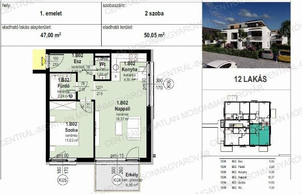 KIZÁRÓLAG A CENTRÁL-INGATLAN KÍNÁLATÁBAN! Azonnal költözhető, új, PRÉMIUM lakás várja új tulajdonosát. A lakáshoz 2db KOCSIBEÁLLÓ tartozik amit a vételár tartalmaz. Hőszivattyús fűtés és meleg víz ellátás + hűtés rendszer!!! Az első emeleti lakás minden tartozékával, beépített bútorokkal és beépített konyhagépekkel vásárolható meg. Van lehetőség akár azonnal átvételre is. - A lakás hasznos alapterület 50.05 m2. A lakás határoló falain belüli terület 47 m2, + erkély 6.09 m2. - A lakás helyiségei: nappali-konyha, hálószoba, fürdőszoba, önálló wc, előszoba helyiségek és erkély. -A saját 2db parkoló árát a vételár már tartalmazza! - A lakás délkeleti-déli fekvésű, nagy nyílászárói miatt minden évszakban napos és világos. - A Gyöngyös Villapark területén található remek adottságú, új lakás, kiváló minőségű kivitelezéssel készült a város egyik legjobb részén. - Az épület hőszivattyús fűtés-hűtés és meleg víz rendszerrel épül! A lakásban padlófűtés készült minden helyiségben. A nappaliban és a hálószobában a hűtésre fan-coil készülékek is felkerültek. A fürdőbe egy elektromos törölközőszárítós fűtőtest is került. - A lakáson belül magas minőségű anyagokkal történt a befejezés. A padló mindenhol fa hatású járólap burkoltak, ami tartós és könnyen tisztán tartható. A wc és a fürdő plafonig csempézett, fürdőkáddal készült. Mosdók, csapok is minőségi termékek - A lakás előszobájában szintén mennyezetig érő beépített szekrény készült cipős és akasztós résszel. -A konyhabútor minden géppel felszerelt (kombi hűtő, mosogatógép, mikró, sütő, főzőlap, páraelszívó). A gépek Bosch márkájúak. A csaptelep flexibilis, kihúzható a maximális kényelem biztosítására. -A nagy méretű erkély dél-délkeleti fekvésű, akadálymentes kilátás nyílik a környező tájra, erdőkre. Kifejezetten jól használható, csak a délelőtti nap süti, délután már árnyékos. - A társasház kerítéssel bekerített, zöldterülete parkosított, parkolók sorompóval zárt részen találhatóak. A társasházat profi társasházkezelő cég üzemelteti gondoskodva a takarításról, fűnyírásról, karbantartásról. - A homlokzat 15cm vastag hőszigetelő rendszerrel burkolt, felületén szilikonos vakolattal. A lakások között és a lakások lépcsőház felőli falainál speciális hanggátló fal készül + az aljzatokba 5-7 cm-es lépés-hangszigetelő akusztikai réteg készül a jó hangszigetelés érdekében. - Az ablakok, erkélyajtók 3 rétegű üvegezéssel, széles profillal szerelt nyílászárók. (u=1.0 W/m2K). Minden ablak és erkélyajtó beépített tokos redőny kapott, amelyek elektromos működtetésűek. Az erkélyajtón és a konyhaablakon szúnyogháló is található. - A lakóparkból a belváros könnyen megközelíthető. 5 percen belül minden fontos kereskedelmi egység elérhető. Üzletek, iskola, óvoda, orvosi rendelő, posta, éttermek, buszmegálló, stb. A lakóparktól 10 perc gyaloglással elérhető a Mosoni-Duna ahol egy gyönyörűen kialakított sétány, strand és játszótér található. - A lakás hűtése is megoldott, ezt fan-coil (klíma) biztosítja a nappaliban és a hálószobában. A hűtést a hőszivattyú végzi, a lakásban elkészült a rendszeren keresztül. Energetikai besorolása bőséggel megfelel a követelményeknek. A rezsiköltség mindössze 25.000.-Ft körül alakul (közös költség, hideg víz, meleg víz, fűtés-hűtés, villany, szemétszállítás). Minden átadott lakásokhoz 3 év teljes körű garancia jár, bizonyos szerkezetekre 8-15 év garancia. Amennyiben az új építésű lakás, vagy bármely a kínálatunkban található lakás felkeltette érdeklődését, hívjon a megadott telefonszámon.