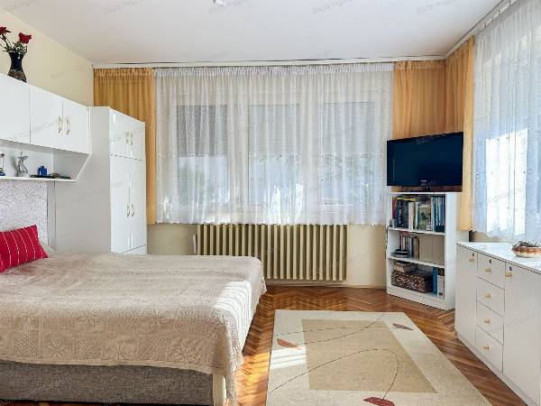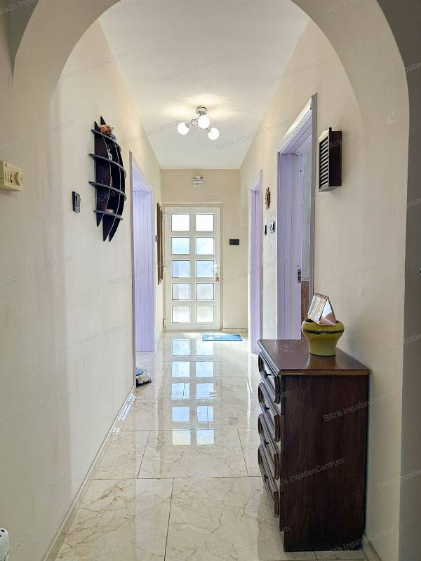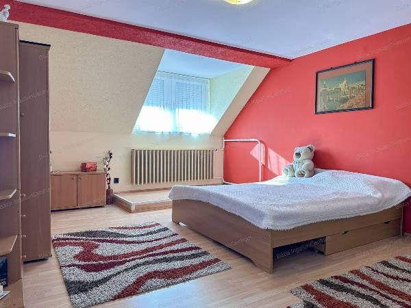 Bács-Kiskun megye Bácsalmás újvárosi részén 200 nm-es családi ház eladó. Az ingatlan 1988-ban épült tégla és szilikát falazattal, beton alapra. A 105,6 nm-es földszinten található egy szoba, nappali, étkező, konyha, kamra, WC, fürdőszoba, előszoba és garázs. A 94,4 nm-es tetőtéri részben kettő szoba, WC, fürdőszoba, társalgó és erkély kapott helyet. A ház egy része alatt szuterén húzódik, amelyben a kazánház került kialakításra. A fűtésről gázkazán és vegyes tüzelésű kazán gondoskodik, hűtését/fűtését klímák látják el. A világos, jó elosztású családi ház járólapos, parkettás és laminált burkolattal van ellátva. Az ingatlanba hőszigetelt nyílászárók kerültek beépítésre. A ház egy 722 nm-es, összközműves, ipari árammal és fúrt kúttal ellátott telken helyezkedik el. A térkövezett és parkosított udvaron, öntözőrendszer került kiépítésre. Az udvaron tartozik hozzá egy melléképület, amely akár külön lakrészként, illetve vállalkozás kialakítására is megfelelő. Az 50 nm-es melléképületben található, egy szoba, nappali, előtér, konyha és vizesblokk, illetve egy épített szauna. A ház akár befektetési célból, illetve két generáció számára is kiváló választás lehet. Vevő ügyfeleinket díjmentes hitel tanácsadással és teljes körű ügyintézéssel segítjük az ingatlan megvásárlásában. Bővebb információért keressen bizalommal!