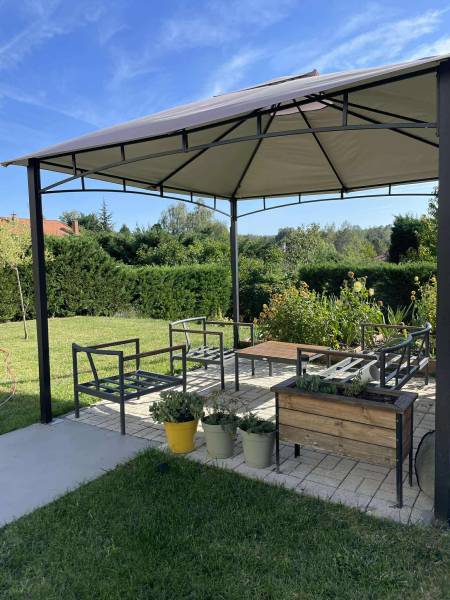 Kivételes lehetőség Piliscsabán! Ez az ingatlan igazi gyöngyszem a piacon, remek ár-érték aránnyal. Tágas, napfényes terek, parkosított, jól kihasználható kert és stílusos belső kialakítás várja leendő tulajdonosát. A 2019-ben épült, tégla szerkezetű ház minden részlete a minőségi életet szolgálja. Modern hőszigetelt nyílászárók, grafitos homlokzati szigetelés, gázkazán padlófűtéssel és radiátorokkal, valamint 3 inverteres klíma biztosítja az otthon kényelmét télen-nyáron. Helyiségek elosztása: Földszint: előtér, nappali, étkező, konyha, garázs, WC Emelet: közlekedő, 3 hálószoba, dolgozó, fürdő Pinceszint: edzőterem, mozi szoba, tároló, háztartási helyiség, fürdő, mosókonyha A terasz déli fekvésű, a nappali szintjén 15 m2, a kerti szinten 15 m2, valamint a kertben található egy víz-és hőszigetelt 12 m2-es kisház , 9 m2-es kerti pavilonnal. A kikapcsolódást és feltöltődést a saját edzőterem és házi mozi teszi teljessé. Az ingatlan per- és tehermentes, tulajdoni viszonyai rendezettek. További információkért kérem keressenek! +36706145282
