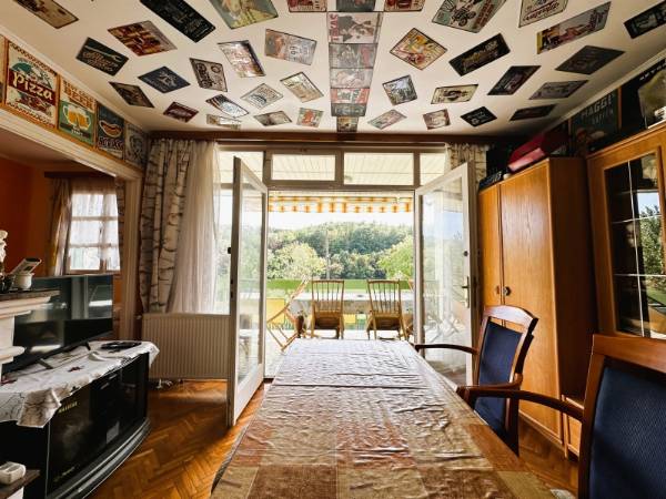 ikonda varázslatos környezetében, közvetlenül a tó partján kínálunk megvételre egy két szintes, összközműves nyaralót, amely nemcsak hétvégi kikapcsolódásra, hanem állandó otthonként is kiválóan alkalmas. A 300 m²-es, gondozott telken álló ház a vízpartra néző panorámával és egyedi hangulattal várja új tulajdonosát. Elosztás és jellemzők: - Alsó szint (kb. 20 m²): külön bejáratú, önálló garzonlakás – nappali, főzőfülke, fürdőszoba WC-vel. Vendégek fogadására, kiadásra vagy akár családtagok külön teréül is ideális. - Felső szint (kb. 35 m²): nappali kandallóval és új hűtő-fűtő klímával, ahonnan közvetlen kijárat nyílik a 8 m²-es tóra néző teraszra. Innen minden reggel és este felejthetetlen kilátás tárul eléd. Ezen a szinten egy hálófülke és egy félszoba is található. - A ház tetőfelújításon és villamos hálózat korszerűsítésen esett át, így biztonságos és kényelmes megoldást kínál. - Fűtésről gázkazán és villanykazán gondoskodik, így az ingatlan egész évben lakható. Kert és külső adottságok: - A telek két utcáról is megközelíthető. - A hátsó udvarban fedett autóbeálló, sütögető és kemence várja a szabadtéri főzések kedvelőit. - A gondozott kert bőven kínál helyet pihenésre, grillezésre, családi és baráti összejövetelekre. Miért különleges? - A nappaliból és a teraszról lenyűgöző panoráma nyílik a tóra. - Az alsó szint különállósága miatt akár több generáció együttélésére vagy vendégfogadásra is alkalmas. Az elhelyezkedés egyszerre biztosít nyugalmat és könnyű megközelíthetőséget: Pécs autóval rövid idő alatt elérhető. Ez az ingatlan tökéletes választás azoknak, akik szeretnének a természet közelségében élni vagy pihenni, élvezni a tóparti élet minden előnyét, ugyanakkor fontos számukra a kényelem és az egész éves használhatóság.