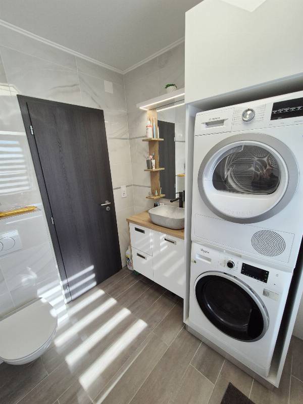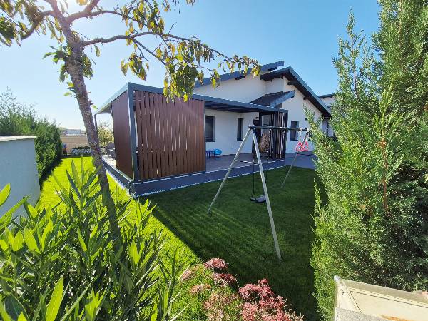 Újszerű, modern CSAK TÁROLÓNÁL KAPCSOLÓDÓ IKERHÁZ eladó Délegyházán – prémium minőség, energiatakarékos megoldásokkal ✨ Délegyháza egyik kedvelt, nyugodt részén – mindössze pár percre Dunavarsányi vasútállomáshoz – kínálunk eladásra egy 2023-ban épült, teljesen újszerű, 97 m²-es iker házat,33 nm-es fedett terasszal melyet modern stílus, gondos tervezés és kiváló minőségű anyagok jellemeznek. A 395 m²-es, szépen parkosított telek, a prémium felszereltség és a korszerű energetikai megoldások együttesen teszik ezt az otthont igazán különlegessé. Ingatlan jellemzői: Lakótér: 97 m², nappali + 4 külön nyíló hálószoba,+33 nm fedett terasz ideális elosztás családoknak vagy otthoni munkavégzéshez is Szerkezet: 30-as tégla, 15 cm homlokzati szigetelés, 30 cm padlásszigetelés – kiváló hőszigetelő képesség Nyílászárók: 3 rétegű Rehau ablakok, alumínium szinterezett redőnyökkel és szúnyoghálóval Telek: 395 m², gyönyörűen parkosított kert automata öntözőrendszerrel Felszereltség és extrák: Fűtés: padlófűtés + radiátoros fűtés, kombi megoldással a maximális kényelemért Energiatakarékosság: szaldós elszámolású 2,5 kW-os napelem – átlagos havi gázszámla mindössze kb. 13.000 Ft! Klíma: 3,5 kW-os hűtő-fűtő klíma, amely az egész ház klimatizálására elegendő Belső tér: Konyha: modern, beépített konyhabútor Electrolux beépített gépekkel, 13 terítékes mosogatógéppel Nappali: elegáns bútorzattal és média fallal Előtér: praktikus beépített előszobabútor Dolgozószoba: egyedi asztalosmunka, komplett bútorzattal – ideális otthoni munkavégzéshez Külső tér: Terasz: 33 m²-es fedett terasz hővédő polikarbonát borítással, alumínium szerkezettel, rejtett esővíz-elvezetéssel és alu lamellákkal – tökéletes helyszíne családi ebédeknek, baráti összejöveteleknek vagy esti pihenésnek Kert: igényesen parkosítva, automata öntözőrendszerrel, így mindig rendezett és zöld környezet várja Miért válaszd ezt az ingatlant? Ez a ház nem csupán egy új építésű ingatlan, hanem egy teljes értékű, exkluzív otthon, amely minden részletében az igényességet és a modern életstílust tükrözi. A praktikus elosztás, az energiatakarékos megoldások és a prémium kivitelezés együtt garantálják, hogy új tulajdonosa hosszú távon is elégedett legyen. Itt valóban nincs más dolgod, mint beköltözni és élvezni a gondosan megtervezett otthon minden kényelmét Hívjon bizalommal akár hétvégén is amennyiben nem tudom fogadni a hívását,visszahívom.