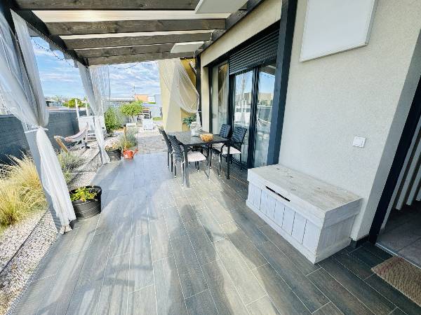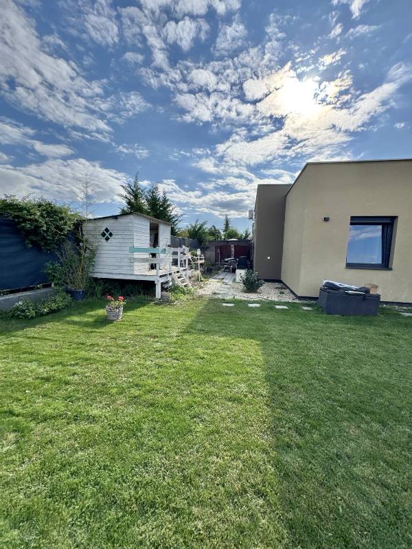 Modern, igényes ikerház Dunaharaszti legkedveltebb részén – a Bezerédi lakóparkban 2019-ben épült, modern és különleges hangulatú ikerház eladó Dunaharaszti egyik legkedveltebb, csendes, zöldövezeti részén, a Bezerédi lakópark zsákutcájának legvégén. Főbb jellemzők: •75 m² lakótér + 16 m² fedett terasz •Teljesen parkosított, gondozott, nagy kert, amely a teraszról közvetlenül elérhető •3 hálószoba, amerikai konyhás nappali, fürdőszoba WC-vel, + külön vendég WC •Praktikus, családbarát elrendezés •Padlófűtés és hűtő-fűtő klíma a tökéletes komfortért •15 cm-es hőszigetelés, a két lakás között teljes hangszigetelés •Okos kapu, okos klíma, fúrt kút (okos öntözőrendszerrel) •Riasztórendszer előkészítve, minden helyiségben bevezetékelve •Két terasz: egyik teljesen fedett, másik 12 m²-es árnyékolt •7 m²-es tároló, saját kocsibeálló •Egyedileg épített, lábakon álló gyerekház és hangulatos grillterasz •A tetőteraszt napozó teraszként tud funkcionálni. AI terv a képek között. A belső tér elegáns és letisztult – egyedi tervezésű bútorok, csendesített fiókok és ajtók, minőségi burkolatok és energiatakarékos beépített gépek biztosítják, hogy ez az otthon nemcsak szép, hanem kifejezetten praktikus és gazdaságos is legyen. Ide tényleg csak beköltözni kell! A környék: A Bezerédi lakópark Dunaharaszti egyik legkeresettebb része, családbarát, nyugodt környezet, kiváló infrastruktúra és biztonságos közösség jellemzi. Bölcsőde, óvoda, iskola, bevásárlási lehetőségek, tömegközlekedés (HÉV, busz) mind pár perc távolságra találhatók. Ideális hely azoknak, akik szeretnének Budapest közelében, mégis zöldövezetben, csendes utcában élni. A ház környékén, hosszú, nyugodt sétákat lehet tenni rendezett, biztonságos környéken. Ez az otthon azoknak szól, akik nem csak házat keresnek, hanem életminőséget. Olyanoknak, akik értékelik a gondos tervezést, a modern technológiát és a harmonikus, nyugodt életteret. Itt tényleg minden adott ahhoz, hogy új fejezetet kezdj – egy helyen, amit hamarosan már csak így fogsz hívni: otthon. Jöjjön el, tekintse meg ezt az exkluzív ingatlant! Szívből ajánlom minden olyan érdeklődőnek, akinek fontos a minőség és kényelem, a jó közlekedés és valamint a központhoz való pár perc alatti közelség, mégis megnyugtató szigetként funkcionáló meghitt családi otthon! Várom hívását! Amennyiben nem tudom felvenni a telefont, hamarosan visszahívom! Hétvégén és esténként is nyugodtan kereshet bizalommal! Független, ingyenes hitel-CSOK ügyintézéssel segítem kedves Ügyfeleimet, igen kedvező hitelekkel 2025-ben is! Mivel ingatlanirodánk építész és ingatlanfejlesztő irodával párosul, így minden hiteles szakmai segítséget meg tudunk adni, mellyel segíteni tudjuk döntését (könyvelő, ügyvéd, energetikai tanúsítvány, kivitelezők, szakértői vélemények....)! Ha a vásárláshoz el szeretné adni a jelenleg meglévő ingatlanját, ebben is nagyon szívesen segítek. Az Ingatlancorner kft. igen alacsony közvetítői díjjal, a legmagasabb színvonalon képviseli az Ön érdekeit. Ellenőrzött Prémium partnerként várom megtisztelő bizalmát! https://partner.ingatlan.com/lazar.hajnalka