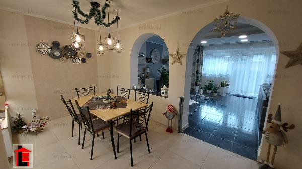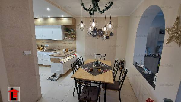 Győr-Ergényi lakótelepen tágas családi ház kis kerttel garázzsal amerikai konyhás nappalival 4 egész szobás hálóval Győr-Ergényi lakótelepen - tágas családi ház - kis kerttel - garázzsal! IGAZI OTTHONT KERES? Helyet ahova szeret majd haza járni? Nyugodt környéket szeretne de nem szívesen mondana le a város közelségéről? Kellene a tér, a tágas otthon, de élvezné a kertet, a teraszt és a nyugalmat? Nagy a család és szükség lenne nagyméretű nappalira és hálószobákra? Esetleg vállalkozása van, amit jó lenne ha otthonából elérhetné? esetleg otthonában lenne? DE MINDEZ ELÉRHETŐ ÁRON? Itt a megoldás!! Bácsán az ERGÉNYI LAKÓTELEPEN egy átmenő forgalomtól mentes utcában találjuk ezt a zárt sorú beépítésű CSALÁDI HÁZAT. Utcáról elérhető egy pince szinten elhelyezett "üzletnek" is használható helyiség. Mellette lévő részen van a ház gépészete és a garázs. Ez összesen 75nm. Innen is elérhető a lakótér. A pince teljes egészében közművesített, kővel burkolt, vakolt és festett. A lakásba egy szépen parkosított előkerten keresztül juthatunk be. A 75 nm-es földszinten találunk egy hálószobát és egy szépen felújított - zuhanyzós fürdőszobát. A konyha és az étkező is felújításra került - gyönyörű - egyedileg tervezett bútorral, gépekkel. És itt található még a lenyűgöző méretű /38nm/ nappali is. A nappaliból egy fedett- ácsolt teraszra léphetünk a hátsó kertbe. Ezzel is megnövelve a nappali különben is szép méretét. A bruttó 75 nm-es felső szintre egy biztonságos húzott fokú lépcsőn juthatunk fel. Itt 3 kényelmes hálószobát találunk. Az egyikhez egy gardrób kapcsolódik. A másik két hálóhoz loggiát építettek. Ezeket a hálószobákat egy 13nm-es fürdőszoba szolgálja ki, káddal és dupla mosdóval. A hátsó udvar körbe kerített, kellemes, kedves, gondozott rész. Pont elég egy kis virágos-füves udvarnak...egy kis homokozónak a gyerekeknek...vagy egy kis medencés nyári kikapcsolódás helyszínéül. Itt találjuk az egyedi megoldással épített - ácsolt teraszt. A pincéből és a földszinti lakótérből is elérhető. Egy kevés műszaki: A zárt sorú beépítésű ingatlant az elmúlt években folyamatosan újították, szépítették. Az alapvetően 38 cm-es homlokzati falazatra 15 cm hőszigetelést tettek. A tetőt Bramac betoncseréppel fedték. Nyílászáróit 3 rétegű műanyagra cserélték, redőnyökkel és szúnyoghálókkal. A fűtésről cirkó-kombi gázkazán gondoskodik, padlófűtéssel. A melegvizet villanybojler állítja elő. A meleg napokban a 3,2 kw-os inverteres hűtő-fűtő klíma segít a megfelelő hőmérséklet elérésében. De ha valaki úgy gondolja akár kandalló vagy cserépkályha beépítésére is van lehetőség, mert a pincéből indulva dupla kémény áll rendelkezésére. A 3 fázisú-rézzel húzott villanyvezetékek maximálisan kiszolgálják a háztartást és a vállalkozást is. Ára 109 millió Ft Jöjjön!!! Nézzük meg együtt ezt a tágas otthont! Higgye el: itt mindenki elfér. Hívjon. Akár hétvégén is. Irodánkban bankfüggetlen hitel tanácsadással és ügyintézéssel segítjük álmai megvalósításában. CSOK és állami támogatások intézése. Ügyvédi és energetikai háttér. Ügyintézés A-tól Z-ig