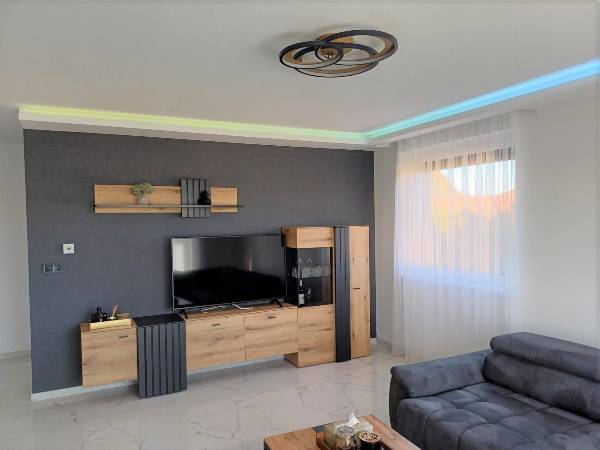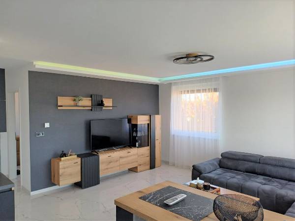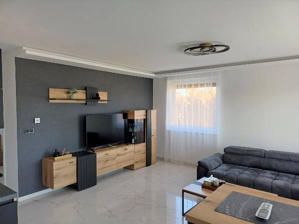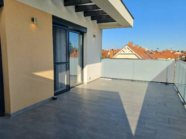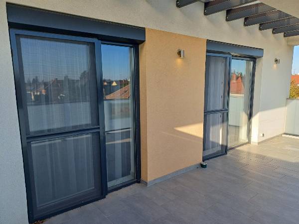 Szombathely belvárosától 5 perc autóútra, 10 perc sétára a megyeszékhely déli részén, a Jászai Mari és a Hajdú utca között épült fel a Mira Garden Lakópark, ahol 57 lakás kapott helyet. Az eladásra kínált lakást 2024. januárban adták át. Állandó lakója még nem volt. A konyhabútor és a beépített gépek sem voltak még használatban. A Mira Garden Lakópark különleges lakókörnyezetet biztosít minden generáció számára, minden követelménynek megfelelve. Területét kis városias lakóövezetté minősítették, így kedvező elhelyezkedése miatt a város egyik legnépszerűbb környékévé vált az elmúlt években. A városrész rehabilitálása befejeződött. A remek elrendezésű, kis alapterületű lakás befektetésnek, illetve első lakáshoz jutó fiataloknak kiváló választás. A remek tervezői munkának köszönhetően vált 55 nm–es + 22 m2 nagyteraszos alapterületű lakássá. A lakás tulajdonosa szintén beletervezte álmait a lakásba. A kettő hálószoba plusz nappali helyett végül tágas nappali-konyhát, plusz egy hálószobát alakított ki. A lakás exkluzivitását az egyedi belsőépítészeti megoldások, a különleges konyha, a fantasztikus panorámájú óriás terasz és a prémium beépített anyagok adják. A konyhabútor egyedi tervezésű és kivitelezésű, magasfényű fronttal, prémium vasalatokkal és prémium beépített gépekkel készült. (mosogató, mosógép, sütő-főzőlap, elszívó). A fürdőszobába egyedileg gyártott burkolatokat építettek be. (2 méter hosszú lapokból készült a zuhanyzó. A fugákat így szinte teljesen kizárták). Hansgrohe szanitereket választott a tulajdonos, szintén prémium minőségben. A házban központi padlófűtés van, egyedi szabályzó berendezéssel. A komfortot növeli még a hűtő-fűtő split klíma. A nappaliból kiléphetünk a 22 m2-es félig fedett teraszra. A kilátás félpanorámás, városra néző. A lakás kiemelt részén elfér egy jakuzzi, egy grillsütő, napozó ágyak és kertibútor szett is. A lakáshoz a belső udvaron autóbeálló jár, hogy a pakolási problémák ne okozzanak gondot. A parkolók megközelítése kiépített útvonalon történik, illetve a kényelmes bejutást távirányítású kapu biztosítja. Kérem keressen, ha érdekli a lehetőség! Előre megbeszélt időpontban tudom megmutatni az ingatlant. Simon Zsolt 06209504680