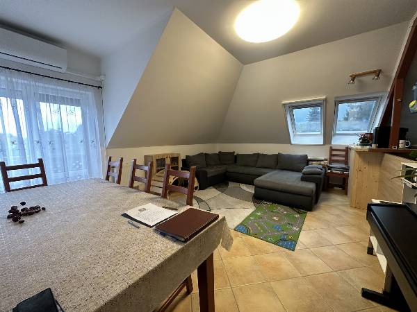 Eladó tágas tetőtéri lakás Győr-Szabadhegyen Győr-Szabadhegy családi házas részén, a Fehérvári út közelében, 2002-ben épült, 8 lakásos társasházban eladó egy bruttó 86 nm-es (nettó 68 nm), nappali + 3 hálószobás, erkélyes, klimatizált téglalakás. Elrendezés: amerikai konyhás nappali, 3 hálószoba, fürdő, WC, kamra, erkély Fűtés: saját kombi gázkazán (padlófűtés + radiátorok), 2 klíma Nyílászárók: új, hő- és hangszigetelt Velux tetőtéri ablakok, műanyag erkélyajtók Konyha: gépesített (gáz főzőlap, elektromos sütő, elszívó) Tartozékok: zárt udvari gépkocsibeálló, közös tároló A lakás világos, jó elrendezésű, alacsony fenntartási költségű, délnyugati tájolású. A társasház rendezett, zárt udvarral rendelkezik.
