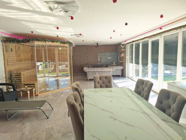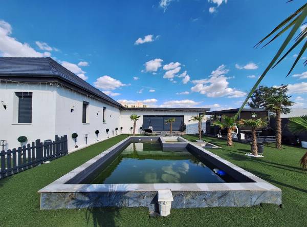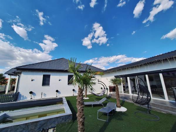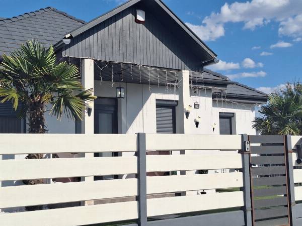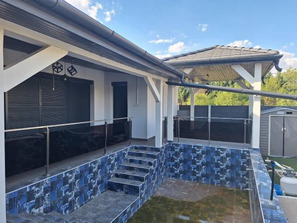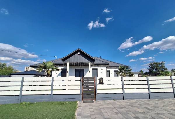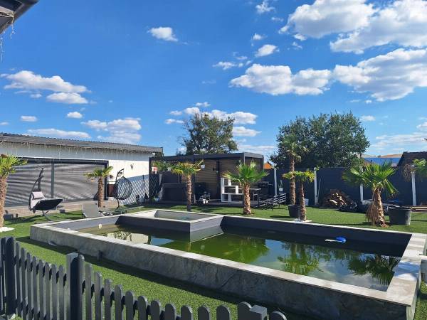 Szolnokon, új építésű családi házas övezetben található, pálmafákkal körülvett, tégla építésű, szigetelt, (Ariston gázkazán) padlófűtéses, 195 m2-es egyszintes, elektromos redőnyös, családi ház, 700 m2-es telken eladóvá vált. A házban, 58 m2-es amerikai konyhás nappali található, amit körbevesz 4db külön nyíló szoba, fürdőszoba és egy tágas gardrób. A szülői hálóból közvetlenül a privát udvarrészre 106 m2) tudunk kimenni, ahol 26 m2-es épített medence található. Az udvari részen 31 m2-es medence, 150 cm mély és mellette egy 6 m2-es gyermek medence, mely hőszivattyúval fűthető (a hőszivattyú az épületre is köthető). A kényelmet a 340 x 280 cm-es fedett, antracit alumínium vázú, elektromos működtetésű pergolás kerti kiülő biztosítja. A házban velnesz rész lett kialakítva, Jakuzzival és 10 személyes extrákkal ellátott infra szaunával, pihenő résszel. Helyiségek: Szélfogó: 4,56 m2 Kamra: 3,42 m2 Mosókonyha: 4,75 m2 Nappali, Étkező, Konyha: 58,80 m2 Közlekedő: 4,75 m2 WC: 1,50 m2 Gardrób: 5,76 m2 Fürdőszoba: 12,96 m2 Gyerekszoba: 4,04 m2 Vendégszoba: 10,08 m2 Szülői szoba: 9,72 m2 Hálószoba: 14,04 m2 Közösségi tér: 61,05 m2 Várom megtisztelő hívását amennyiben szeretné személyesen megtekinteni az ingatlant! Az információk a Megbízótól származnak, felelősséget nem vállalunk érte. Irányár: 185 M Érd: 70 411 9927