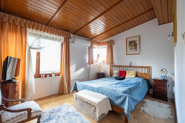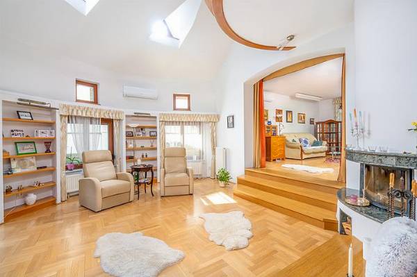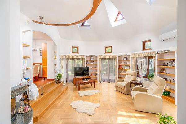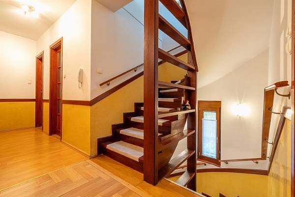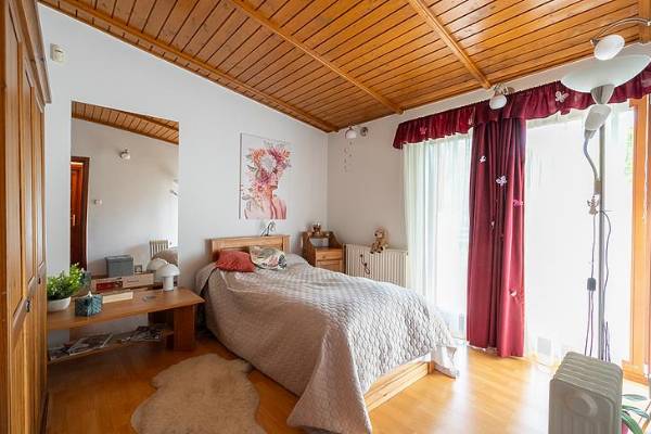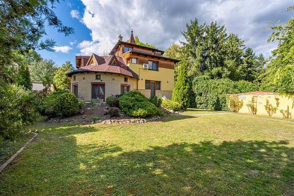 Csillaghegy szívében ELADÓ egy különleges, romantikus CSALÁDIHÁZ! Budapest egyik legkedveltebb kertvárosi részén, Csillaghegy központjában kínálunk megvételre egy igazán különleges, egyedi hangulatú, romantikus családi házat, amely 347 négyzetméteres összterületével, több szintjével és gyönyörű, gondozott kertjével tökéletes OTTHONT nyújt. A 1998-ban épült, masszív, 38 cm-es Porotherm téglából készült épületet az eredeti építtető és tervező gondos odafigyeléssel tájolta, a belső tereket pedig funkcionálisan és esztétikusan alakította ki. A ház egyik különleges eleme a szinteltolásos, körcikk alakú nappali, amely galériás kialakításával, kandallójával és nagy belmagasságával lenyűgöző központi teret biztosít – ez a ház valódi szíve. Az ingatlan 2015-től folyamatosan karbantartott és korszerűsített: az összes külső nyílászáró egyedileg gyártott, ragasztott, tömbösített fa nyílászárók 3 réteg hő- és hangszigetelő üvegezéssel; a homlokzat teljes körű hőszigetelést; a tető pedig vörösréz bádogozással ellátott kanadai zsindely fedést – mindezek alatt további 10 cm vastag szigetelés fokozza az energiahatékonyságot. A belső terek is átgondolt felújításon estek át: parkettacsiszolás, festés, szőnyeg- és lépcsőburkolatok cseréje, valamint az elektromos és gépészeti rendszerek felülvizsgálata történt meg. Illetve beszerelésre került 4 db hűtő-fűtő klíma is, ami nagy segítséget nyújt a nyári meleg időszakban. Az ingatlan négy szinten kínál kényelmet és sokoldalúságot: • Szuterén (92,76 m²): kétállásos garázs (fűtött rámpa), hobby szoba, kazánház, kamra és tárolóhelyek – ideális helyszín akár műhelynek vagy otthoni edzőteremnek. • Földszint (127,98 m² + 29,03 m² terasz): lenyűgöző nappali, dolgozószoba, tágas konyha-étkező, külön mosdó és nappali kerengő. A nagyméretű, fedett terasz a kert felé néz, tökéletes reggeli kávézáshoz vagy esti borozgatáshoz. • Emelet (101,26 m² + 3,73 m² erkély): három tágas hálószoba, gardróbszobák, mosókonyha, fürdő és külön mosdó – a család minden tagja kényelmesen elfér. • Tetőtér (25,59 m² + 4,95 m² erkély): külön beépített szoba és hangulatos tetőerkély – ideális dolgozószobának, vendégszobának vagy tiniszobának. A kert és az udvar külön figyelmet érdemel: 2015-ben teljesen megújult, dísznövényekkel, amerikai tulipánfával, japán birssel, sziklakerttel és automata öntözőrendszerrel felszerelve. A hátsó udvar csendes, intim részében grillező és tűzrakóhely került kialakításra, beton térkő sétánnyal – a baráti összejövetelek kedvenc helyszíne lehet. A gyep alá vakondháló került, így mindig rendezett, zöld környezet várja az új tulajdonosokat. A parkolás a házhoz tartozó garázsban megoldott, de az utcán közvetlenül az ingatlan előtt további három autó számára van hely. Környékről: Közelben minden olyan szolgálatás megtalálható amire szüksége lehet a mindennapokban (kisebb élelmiszer boltok, piac, éttermek, gyógyszertárak illetve strandfürdő is). Gyerekes családoknak nagyon ideális hiszen játszóterek, Óvoda, Iskola, Egyetem van a közelben. Tömegközlekedés szempontjából is tökéletes hiszen pár perc sétára található számos buszmegálló, illetve a H5-ös hév. FINANSZÍROZÁS: Banki finanszírozással is megvásárolható, melyben irodánk ingyenes tanácsadással áll rendelkezésükre! VEVŐINK RÉSZÉRE A KÖZVETÍTÉS DÍJTALAN! A beépített bútorzat a vételár részét képezi.