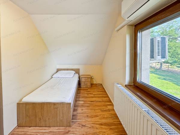 Kecskemét kedvelt, csendes részén, Belsőnyírben kiadó egy 90 nm-es, szép állapotú családi ház. Az ingatlan nappalival, két szobával és két fürdőszobával rendelkezik, így ideális otthona lehet pároknak, vagy kisebb családoknak. A tágas, 2000 nm-es udvar térkövezett, az elektromos kapu kényelmes bejutást biztosít. A házban klímák, beépített szekrények és riasztórendszer is található, és teljes bútorzattal együtt vehető bérbe. A műanyag ablakok redőnnyel felszereltek, a szigetelt falazatnak köszönhetően pedig a fenntartási költségek kedvezőek. A ház hosszú távra, minimum 12 hónapra kiadó, 2 havi kaució megfizetésével.