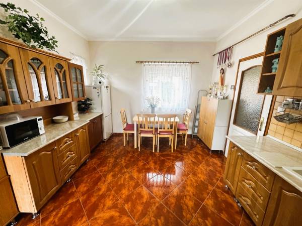 Ha nyugodt, családi házas környezetben keresel otthont, ahol minden karnyújtásnyira van, de mégis csend és biztonság vesz körül, ez a 60 m²-es, téglaépítésű ház tökéletes választás lehet. A ház 2013-ban teljes körű felújításon esett át, így gondtalanul költözhető. A külső homlokzat 10 cm vastag szigetelést, a födém pedig stukatúros, de vastagon hőszigetelt kialakítást kapott. Nyáron és télen is kellemes hőmérsékletről a gázkazán és a korszerű hűtő-fűtő klíma gondoskodik. A praktikus elrendezésnek köszönhetően egy világos nappali, egy kényelmes hálószoba, tágas konyha-étkező, valamint fürdőszoba és külön WC szolgálja a mindennapi kényelmet. A 406 m²-es telek igazi ékszerdoboz: szépen gondozott udvar, örökzöldek, gyümölcsfák, fedett terasz és kerti grillező biztosítja a családi összejövetelek vagy a baráti esték hangulatát. A kertben még különleges dísznövények, sőt banánfa is helyet kapott, ami igazán egyedi hangulatot ad. Az autóval érkezők számára hatalmas előny a kétállásos, újszerű fedett autóbeálló, amely védi a járműveket az időjárástól. A környék rendkívül barátságos és biztonságos, családok és idősebbek számára egyaránt ideális. Pár perces távolságban boltok, iskola, óvoda, orvosi rendelő és buszmegálló is található, így a mindennapi élet rendkívül kényelmes. Ez a ház nemcsak egy ingatlan, hanem egy igazi otthon, amely nyugalmat, kényelmet és meghittséget kínál. Tehermentes, azonnal költözhető!