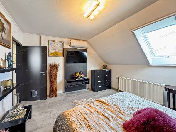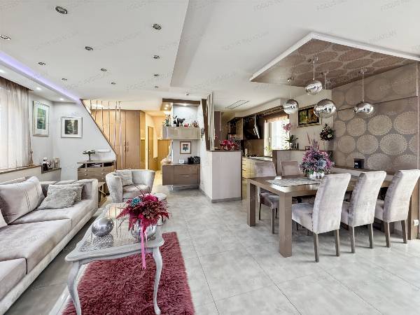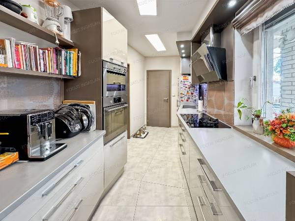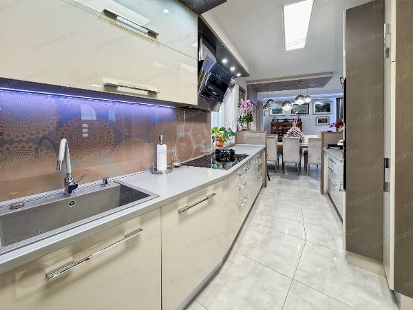 Eladó Kecskeméten, a FOCUS INGATLAN kínálatából, Kecskeméten a Petőfiváros kedvelt részén, 439 nm-es optimális méretű telken, egy nappali + 5 szobás családi ház igényesen felújítva! MŰSZAKI JELLEMZŐK: - hőszigetelt tégla falazat - szigetelt fa ablakok, elektromos zsaluziával - Velux tetőtéri ablakok - 6,6 kW-os szaldós napelemrendszer - két elektromos autó egyidejű töltésére kialakított töltőállomás - kondenzációs gázkazán (mobilról is szabályozható termosztáttal) - padlófűtés a földszinten, radiátorok az emeleten - 4 db inverteres hűtő-fűtő klíma - gépesített konyha, indukciós és gáz főzőlappal - riasztó KÉNYELMI FUNKCIÓK: - tágas, 188 nm-es lakótér - nappali + 5 szoba ( ebből 1 jelenleg gardrób ) - dupla fürdő - beépített szekrények - 40 nm fűtött pince, szaunával, műhellyel - 24 nm-es garázs, elektromos kapuval + fedett udvari kocsibeálló KERT: - 42 nm-es fedett terasz - fedett, ellenáramoltatós medence (3x6 m) - fúrt kút és automata öntözőrendszer a parkosított udvarban Kiváló lehetőség nagycsaládosoknak, akik ideális helyen, gondtalan otthonra vágynak, ahol a magas műszaki tartalom garantálja a kényelmet és a modern életstílust. Ez a ház tökéletes választás mindazoknak, akik egy szuper helyen fekvő, letisztult és energiatakarékos otthont keresnek, és nem akarnak foglalkozni a felújítás terheivel. A tulajdonos kérésére az ingatlan megtekintése kizárólag egy előzetes, személyes irodai találkozó után lehetséges!