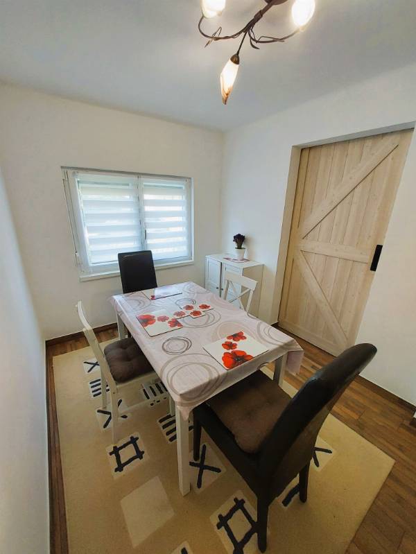 Harkány közkedvelt, csendes részén eladó egy teljesen felújított, tetőteres nyaraló, amely egy 295 m²-es, gondozott telken áll. A 75 m²-es ingatlan bejárata egy 21 m²-es, napfényes teraszról közelíthető meg. A földszinten tágas, világos nappali, étkező, konyha, fürdőszoba és külön WC kapott helyet, míg az emeleten három külön nyíló szoba található, melyek közül az egyikhez egy 5,4 m²-es, déli fekvésű erkély tartozik, ideális hely a reggeli kávéhoz vagy az esti borozáshoz. Az emeleten háztartási helyiség is van, ahol a villanybojler található. A ház minden részletében megújult: a víz- és villamos hálózat cserélve lett, az új hőszigetelt nyílászárók redőnnyel és szúnyoghálóval felszereltek, a padlóburkolatok pedig minőségi járólapokból és laminált padlóból készültek. A fűtést jelenleg két Gree energiahatékony klíma biztosítja, de a kiépített kémény lehetőséget ad kandalló vagy kályha beépítésére is. Közművek: Víz, villany van, gázvezeték az utcában van. Fontos megjegyezni, hogy Harkány ezen részén nincs kiépített csatornarendszer, így a szennyvíz elvezetése zárt emésztővel megoldott. A telken mobil tároló található, autóbeállásra pedig az udvarban vagy a ház előtt van lehetőség. A közelben minden megtalálható, ami a mindennapi élethez szükséges: buszmegálló, bölcsőde, óvoda, orvosi rendelő, bankok, boltok,( Spar ), pékség, piac, éttermek és kávézók. Az elhelyezkedésének köszönhetően a környező városok is könnyen elérhetők: Pécs 25-30 perc, Siklós és Drávaszabolcs pedig alig 10 perc autóval. Ez a ház tökéletes választás lehet nyaralónak, családi otthonnak, vagy befektetésnek is! Ha felkeltette érdeklődését ez a nyugalmat árasztó ingatlan, hívjon bizalommal, és tekintse meg személyesen!