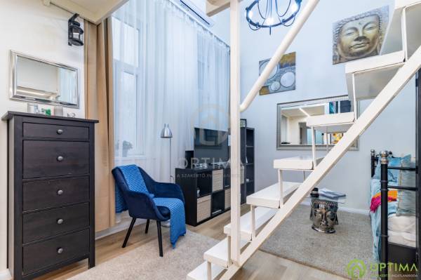 FELÚJÍTOTT KISGARZON BUDAPEST SZÍVÉBEN Az Andrássy út Deák Ferenc tér felőli végénél kínálom megvételre ezt a tulajdoni lapon 22 m2 (galériával együtt 29 m2) alapterületű, III. emeleti garzonlakást egy FELÚJÍTOTT, LIFTES társasházban. A házból kilépve tényleg minden a lábunk előtt hever. A számos elegáns üzleten és éttermen túl 3 metróvonal megállója (M1, M2, M3), számos busz és trolibusz megállója, valamint a Deák Ferenc térről induló villamosok megállója is néhány perc alatt elérhetők. A lakás a közelmúltban teljes körű felújításon esett át, ennek köszönhetően megtörtént a vezetékek cseréje, a nyílászárók cseréje, valamint a burkolatok cseréje is az ingatlan minden helyiségében. 3 nagy ablakkal rendelkezik, melyek egy nagyon csendes, kis belső udvarra néznek. A mindig kellemes és egyenletes hőmérsékletről egy GREE hűtő-fűtő légkondicionáló gondoskodik. Ez az ingatlan kiváló BEFEKTETÉSI LEHETŐSÉG, ilyen áron az Andrássy úton szinte lehetetlen ingatlanhoz jutni! Az ingatlan azonnali bevételt termelni képes beruházását jelenthet új tulajdonosa számára, kiválóan alkalmas KÖZÉP- és HOSSZÚTÁVÚ bérbe adásra, amire ebben a lokációban hatalmas kereslet van a Budapesten tanuló külföldi diákok körében. Az ingatlan FENNTARTÁSA RENDKÍVÜL ALACSONY, a közös költség mindössze 6 ezer forint körül van, mely összegbe ráadásul a korlátlan vízfogyasztás is beletartozik. További részletekért és az ingatlan megtekintése miatt VÁROM HÍVÁSÁT akár hétvégén vagy az esti órákban egyaránt!