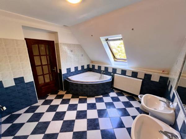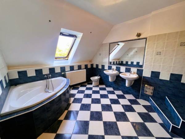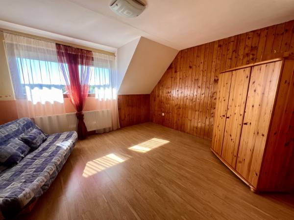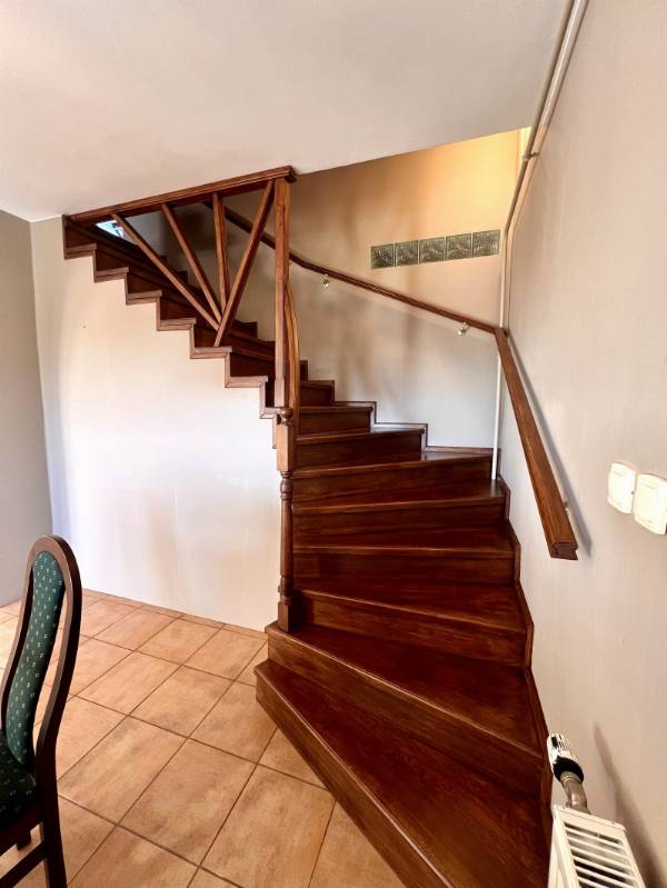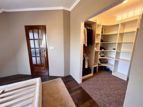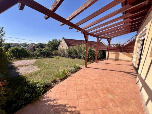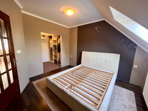 Eladásra kínálunk Pécs-Kertváros Málomi részén egy 150 m2-es, belső két szintes, 4+1 fél szobás családi házat. Az ingatlan 267 m2-es sík telken fekszik, egy csendes, nyugodt zsákutcában. 1997-ben épült, kiváló állapotú. É-D-i fekvésű, így rendkívül világos. Nagyon praktikus elrendezésű, minden helyiség külön-külön nyílik. Az alábbi helyiségek találhatók meg bent: Földszint: szélfogó, előszoba, ahonnan nyílik egy fürdőszoba+ WC, a félszoba, illetve a szuterén lejárat. Külön ajtóval van elválasztva a tágas amerikai konyhás nappali+ étkező, ahonnan fa lépcsőkön juthatunk fel az emeletre. A nappaliból egy 20 m2-es teraszra illetve a kb. 100 m2-es udvarra léphetünk ki. Emelet: közlekedő, fürdőszoba, WC, 3 külön nyíló szoba, illetve a hálóból nyíló gardrób. Műszaki leírás: A ház 38-as porotherm téglából épült 1997-ben, mely lyukacsos szerkezetű, így kiváló hőszigetelő tulajdonsággal bír. Dupla üvegezésű fa nyílászárók lettek beépítve, melyek redőnnyel és szúnyoghálóval vannak ellátva. A beltéri ajtók és a bejárati ajtó szintén fából készültek. A tetőtéri ablakok mindegyike Velux. A betonfödém perlites, mely kiváló hőszigetelő. A fűtést gáz-cirkó kazán biztosítja, szabályozható radiátorokkal. Parkolni a garázsban és az udvarban lehetséges, de a ház előtt, közterületen is, mely ingyenes. Ajánlom olyan családoknak, akik a város zajától távol csendes, nyugodt környéken szeretnének élni! További kérdés és megtekintés esetén keressen bizalommal!