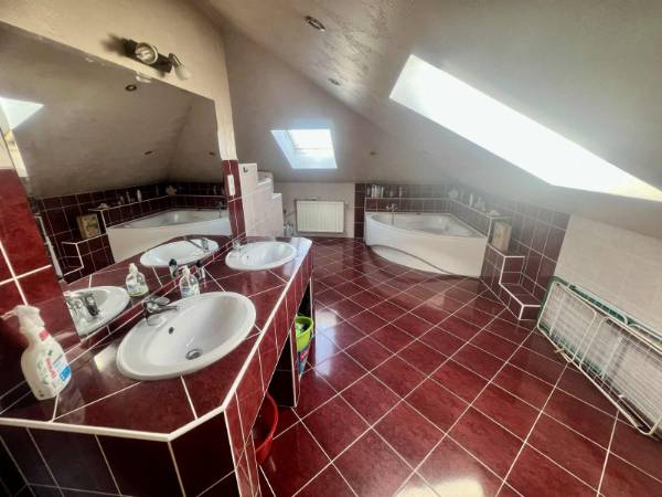 MEGVÉTELRE kínálok a XVII. kerületben Rákoscsabán családi házas övezetben, csendes utcában 882 nm-es telken egy 200 nm-es minden igényt kielégítő, kívül belül újszerű állapotban lévő, világos, TEHERMENTES, AZONNAL KÖLTÖZHETŐ, 7 szobás családi házat, nagy garázzsal és több autó számára beállási lehetőséggel. A ház 2003-ban épült masszív beton alapra, téglafalazatú, szigetelt, cserép fedéssel. A házban az otthonos életérzés és a kényelem ötvöződik. A ház körbejárható. Az alsó szinten az előszobából egy tágas 50 nm-es napfényes nappaliba érkezünk, ahonnan a nagy teraszon keresztül a parkosított kertbe juthatunk. Az előszobából jobbra található egy nagy garázs, továbbhaladva két kisszoba, fürdőszoba, ahol fürdőkád, zuhanyzó és egy külön wc található. Ezen a szinten helyezkedik el a kazánház kis mosóhelyiséggel. Balra található a konyha, a beépített konyhabútor, háztartási gépekkel együtt az ár részét képezi. A lenti szinten a padlófűtéses nappaliban még pluszban egy egyedi tervezésű kandalló gondoskodik a kellemes hőérzetről és hangulatról. Az emeletre egy fa lépcsőn keresztül jutunk egy tágas nappaliba konyhával, innét nyílik 3 szoba gardróbbal, nagy sarokkádas fürdőszoba wc-el. A fenti részt oszlopon keresztül befűti a kandalló. Az emeleten klíma biztosítja nyári melegben a kellemes hőmérsékletet. Az otthon biztonságáról egy több ponton záródó biztonsági bejárati ajtó gondoskodik. A fa nyílászáró termő üveggel ellátott. A nappali, konyhák és a fürdőszobák járólappal, a szobák laminált parkettával burkoltak. A szépen rendben tartott telek termő gyümölcsfákkal, /alma, körte, cseresznye, szilva/ beültetve, melynek locsolásáról ásott kút gondoskodik. A ház alatt egy 18 nm-es ablakos pince található, a bejáratnál száraz angol ablakos megoldással. A környék közlekedése és infrastruktúrája kitűnő Csendes, biztonságos, kertvárosi. A közelben található: óvoda, iskola, Pizzéria, játszótér, valamint pár perc sétával elérhető a 161, 161E, 162, 262 buszok megállója. Szívből ajánlom ezt a jó elhelyezkedésű, jó elrendezésű ingatlant minden korosztálynak, de főleg családoknak, összeköltözőknek, akik a kerület csendes részén keresik új otthonukat. Hívjon bizalommal, nézze meg személyesen! Amennyiben az ingatlan megvásárlásához el kell adnia meglévő ingatlanját, ebben is állunk szíves rendelkezésére.