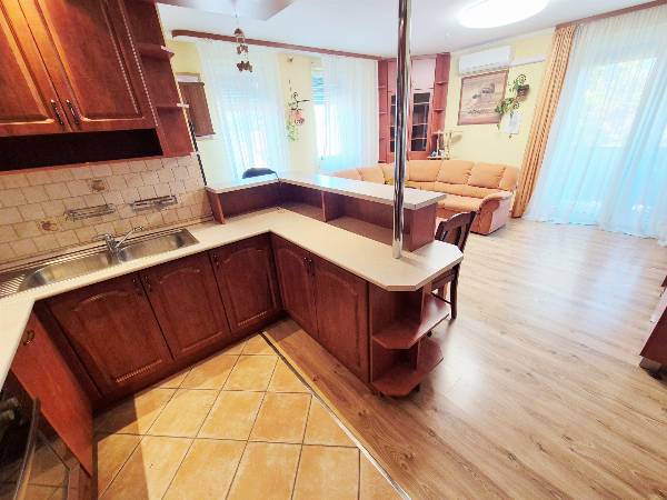 ELADÓ LAKÁS DUNAHARASZTI SZÍVÉBEN – BAKTAY TÉREN! Dunaharaszti központjában, a Baktay téren, 2005-ben épült 39 lakásos, LIFTES társasház 1. emeletén kínálunk eladásra, egy 69,25 m² alapterületű - 2,5m2-es erkéllyel rendelkező lakást. A lakás elosztása ideális: nappali + 2 hálószoba, világos és barátságos terekkel. - Tehermentes - Azonnal költözhető - Igény esetén garázs is vásárolható! Kiváló választás mindazoknak, akik szeretnének a város központjában, mégis nyugodt környezetben élni, minden fontos szolgáltatás (üzletek, közlekedés, iskola, orvosi rendelő) karnyújtásnyira. LAKÁS ELOSZTÁSA: A lakásba lépve egy tágas előszoba fogadja az érkezőket, egy MINDENT ELNYELŐ faltól falig beépített tolóajtós gardrób szekrénnyel. Balra nyílik egy tágas amerikai konyhás nappaliba lépünk, ahol egy mennyezetéig beépített, U alakú beépített konyhabútor fogad minket, reggeliző pulttal. A nappali tér kényelmesen berendezhető és méretének köszönhetően még egy dolgozó sarok is helyet kapott, ahol természetes fény mellett dolgozhat. A nappaliból elérhető egy 2,5 m2-es fedett erkély is. Egy kényelmes közlekedőn keresztül közelíthető meg a két egymás mellett elhelyezkedő hálószoba, beépített szekrényekkel, melyek a vételár részét képezik. Majd a sort a külön mellékhelyiség és a nagyméretű káddal felszerelt fürdőszoba zárja, ahol igény esetén egy plusz zuhanyzó is kialakítható, jelenleg beépített mosdószekrény és felső szekrények is elérhetőek és a mosó-szárítógép is könnyen elhelyezhető a méretének köszönhetően. MŰSZAKI ADATOK: -KÖRÍTŐ FALAZAT: 30cm Porotherm téglából épült -HOMLOKZATI SZIGETELÉS: 5cm dryvit szigetelés -FŰTÉS- MELEGVÍZ ELLÁTÁS: házközponti fűtés és melegvíz ellátás egyedi méréssel. -NYÍLÁSZÁRÓK: 2 rétegű műanyag nyílászárók -REDŐNY-SZÚNYOGHÁLÓ: redőny minden ablakon, szúnyogháló majdnem minden ablakon elérhető. -HŰTÉS: nappaliban egy MIDEA 3,5Kw-os hűtő fűtő klíma gondoskodik -ELEKTROMOS HÁLÓZAT: 1x32 Amper FELÚJÍTÁSOK: -A konyhabútor frontjai 2018-ben cserélve letten fogantyúkkal együtt -Illetve 2 évvel ezelőtt egy 10 terítékes AEG beépített mosogatógép került elhelyezésre. A VÉTELÁR RÉSZÉT KÉPEZI: a beépített konyhabútor, beépített konyhagépekkel, illetve az előszobában, a két hálószobában és a nappaliban lévő sarok szekrény a vételár részét képezi. De igény esetén, a képeken lévő bútorzat külön megállapodás alapján megvásárolható. KÖZÖS KÖLTSÉG: 23.904.-Ft (mely tartalmazza: közös terek takarítása, közös áram fogyasztást, lift karbantartást, szemétszállítást és felújítási alapot. Garázs megvásárlása esetén a közös költség: 5.500.-Ft REZSI: 35.430.-Ft FŰTÉSI IDŐSZAKBAN, 25.847.-Ft NYÁRI IDŐSZAKBAN (mely tartalmazza: fűtés, melegvíz és hidegvíz használatot, gáz alapdíjat és a villanyszámlát) GARÁZS: ház alatt elhelyezkedő teremgarázs hely, ami 12m2-es (2,5mx5m) ami igény esetén megvásárolható, 2.900.000.-Ft-ért. BICIKLI TÁROLÓ: A garázstérben, egy kb. 20m2-es kerítéssel körbekerített területén biciklitároló is elérhető. Kiváló elhelyezkedésének köszönhetően, minden 1 perc sétával elérhető: helyi járat megállója, óvoda, posta, kormányhivatal, gyógyszertár, Dm, zöldséges, étterem, kávézó, a Hősök tere, amely egy gyönyörűen rendben tartott park padokkal, ahol kutyáját sétáltathatja, illetve számtalan városi rendezvény helyszínéül szolgál pl: karácsonyi- adventi vásár jégpályával, főző fesztiválok stb. Így idősebb korosztálynak illetve gyerekes családok számára is kiváló választás! Az ingatlanra OTTHON START hitel és CSOK Plusz is igényelhető! További bővebb információkért illetve a megtekintés ügyében forduljon hozzám bizalommal, akár hétvégén is, ha nem tudom fogadni hívását, visszahívom!