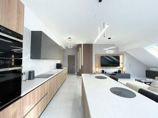 XV. KERÜLETBEN: RÁKOSPALOTÁN, ÚJSZERŰ, 2025-BEN ÉPÜLT, BRT. 157 M2, AMERIKAI KONYHÁS NAPPALIS, 3 SZOBÁS, DUPLAKOMFORTOS, EGYEDI PENTHOUSE LAKÁS, 2 TERASSZAL, TÁROLÓVAL. AZ ÉPÜLET JELLEMZŐI: Téglaépítésű, 2025-ben épült, 8 lakásos társasház. Az épületbe arcfelismerő- és ujjlenyomat felismerő rendszerrel lehet bemenni. A LAKÁS JELLEMZŐI: A lakásban egy 44 m2-es amerikai konyhás, étkezős nappali, 3 szoba, 2 fürdőszoba, előtér, közlekedő, mellékhelyiség és 2 terasz található (7 m2+ 23 m2). Gyönyörű, egyedi, minőségi burkolatok lettek beszerelve. A nyílászárók elektromos redőnyökkel vannak ellátva, a bejárati ajtó egyedileg gyártott, több ponton záródó speciális biztonsági ajtó. A fűtés hőszivattyús, (mennyezti hűtés, padló fűtés), szellőztető rendszer is rendelkezésre áll. Smart home (fűtésre és árnyékolásra) - és riasztórendszerrel is ellátott a lakás. A lakás teljes bútorzata megbeszélés tárgyát képezi. Tartozik a lakáshoz egy 7 m2 és 23 m2-es terasz, illetve egy saját tároló. Igény esetén 3 db garázs vásárolható a lakáshoz, 7.000.000 Ft/ darab. A garázsoknál a napelemrendszer vezetékrendszer már ki vaépítve. FINANSZÍROZÁS: Az ingatlan hitelre is megvásárolható. Bankfüggetlen tanácsadóink, az ország összes pénzintézete közül gyorsan és gördülékenyen találja meg az Önnek legmegfelelőbb konstrukciót, egyedi kedvezményekkel. A hitel közvetítés díjmentes. A hirdetésben szereplő adatok tájékoztató jellegűek. Várjuk hívását munkanapokon 09.00- 18:00 óra között. Amennyiben eladná saját ingatlanát, több mint 10 éve működő, kifejezetten a kerületre szakosodott irodánktól, INGYENES ÉRTÉKBECSLÉST kérhet