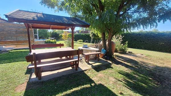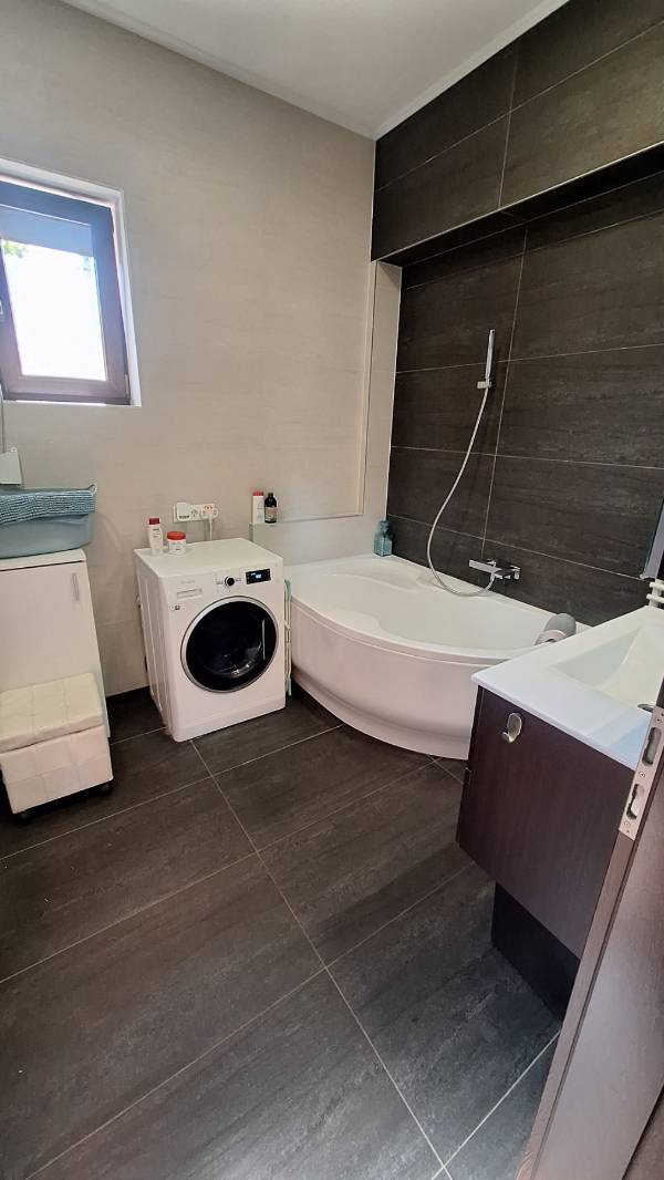 Fót természetközeli, panorámás részén, kizárólag prémium minőségű anyagok felhasználásával épült, újszerű állapotú, rezsimentes családi ház dupla garázzsal, medencével eladó! A 2019/20-as építésű ingatlan 30-as Pth tégla falazattal +15cm dryvit szigeteléssel, hőszigetelt üvegezésű nyílászárókkal, fafödémes szerkezettel és cserépfedéssel rendelkezik. Egyszintes, hasznos lakóterülete a garázzsal együtt 180nm. Kialakításra került benne előtér, amerikai konyhás-étkezős nappali, kamra, két nagyobb és egy kisebb szoba, kádas-zuhanyzós fürdőszoba, külön mellékhelyiség, valamint 18nm-es pince és 50nm-es fűtött duplagarázs is. Kaputelefonnal és riasztóval felszerelt, fűtéséről H tarifás Ururu Sarara levegő hőszivattyú gondoskodik. A modern, energiatakarékos megoldásoknak és a 12KW-os napelemrendszernek (bruttó szaldó 10 évig, MVM részéről 80-100Eft visszatérítés évente) köszönhetően fenntartási költsége minimális. A házhoz 24nm-es fedett és 20nm-es nyitott, körmedencés terasz is tartozik. (Medence átmérője 4,6m, fűtése hőszivattyús). A 38m széles, 1870nm-es kocka formájú telek gondozásmentes kerítéssel lett ellátva. Parkosított udvarában fedett szaletli, kerti tároló és grillező kapott helyet, ill. a bejáratnál egy külső gardró/tároló is megtalálható. A fű nyírását Husqvarna robotfűnyíró, a növények locsolását 380m mély fúrt kút és öntözőrendszer (600m-en) látja el. Parkolás a garázs előtt, térkövezett kocsibeállón is megoldható, a be-és kiállást elektromos kapuk segítik. Nagyon jó csendes, barátságos környék kiváló infrastruktúrával. Budapest autóval akár 10 perc alatt is elérhető, buszmegálló, vonatállomás, iskola, óvoda, közért gyalog 3-6 percre van. Az ár részét képezi: - Magasfényű, gránit mosogatós konyhabútor, - mosogatógép, sütő, tűzhely, - rengeteg led világítás, hangulatfények, - kerti szaletli, grillező, - garázs melletti kerti tároló, - bejáratnál külső gardrób/tároló. Irányár: 175Mft Hivatkozási szám: 2518196. Megtekinthető telefonos időpont egyeztetés alapján: Sápi Balázs +36 20 772-2429 sapibalazs@godolloi.hu GÖDÖLLŐ INGATLANKÖZPONT - www.godolloi.hu: Gödöllő és környéke legnagyobb ingatlan választéka /Gödöllő, Szada, Veresegyház, Kistarcsa, Kerepes, Erdőkertes, Fót, Dunakeszi/ eladó-kiadó családi ház, telek, lakás! Ingatlan építés és felújítás!