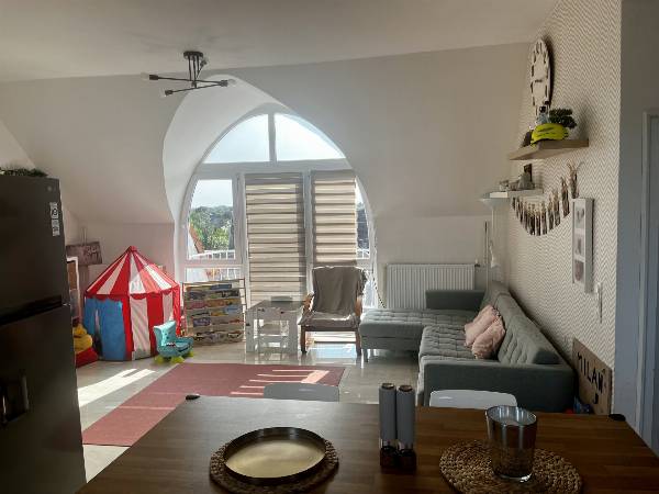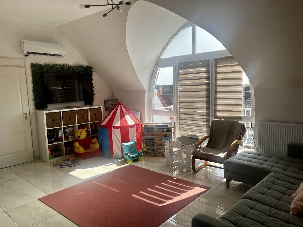 Eladó lakás; 83 m²; 89,9 M Ft; Budapest XVIII. kerület, Újpéteritelep Eladó egy 83 m²-es, 1+2 félszobás, tetőtéri lakás, saját kertrésszel, Budapest XVIII. kerületének csendes, kertvárosi részén, egy 3 lakásos társasházban. Főbb jellemzők: Alapterület: 83 m² Elrendezés: amerikai konyhás nappali + 2 félszoba Erkély: 4 m², délnyugati tájolású Saját udvari gépkocsibeálló Kert használat Privát, zárt lépcsőház + extra tároló + padlás Belső kialakítás: Világos nappali amerikai konyhával és étkezősarokkal Teljesen gépesített konyha konyhaszigettel és bőséges tárolóhellyel Két WC: különálló + fürdőszobában Fürdőszoba: felújított, zuhanyzóval és káddal Klímával felszerelt nappali Műszaki állapot: Korszerű kondenzációs gázkazán (radiátoros fűtés) Klíma a nappaliban (fűtésre és hűtésre) Jó állapotban lévő nyílászárók Délnyugati fekvés, napfényes helyiségek Környezet és infrastruktúra: Csendes, családbarát környék, barátságos lakóközösség A társasházban 2 lakás és 1 üzlethelyiség található Közelben: bevásárlási lehetőségek, óvoda, iskola, orvosi rendelő Kiváló közlekedés: Kőbánya-Kispest 20 perc, repülőtér és belváros könnyen elérhető