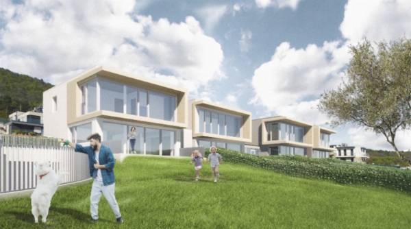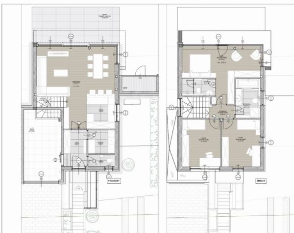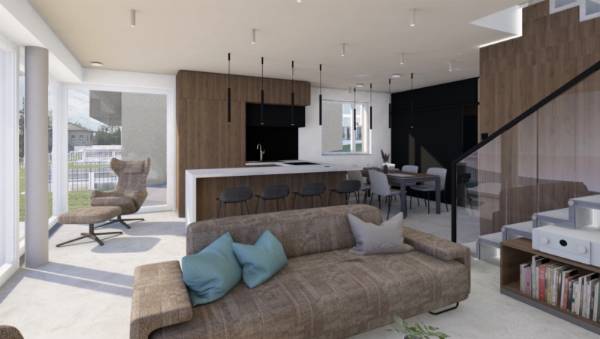 MINIMÁL STÍLUSÚ, ÚJ ÉPÍTÉSŰ ház eladó III. kerület EXKLUZÍV, modern lakóparkjában, a HARSÁNY LEJTŐ II. ütemében Átadás: 2025 nyár Az eladásra kínált ÖRÖK PANORÁMÁS ikerház a legfelső utcájában, a Turbolya közben épül, GYÖNYÖRŰ KILÁTÁSSAL A FÖLDSZINTRŐL ÉS EMELETRŐL egyaránt. A környező telkeken befejezett, modern stílusú házakkal, igényes környezettel. A két ikerfél CSAK A GARÁZSOKKAL KAPCSOLÓDIK egymáshoz, egymástól független utcai bejáratokkal és szeparált kerttel rendelkeznek. A nappali és a szülői háló HATALMAS ÜVEGFELÜLETEKKEL nyílik a kert és az elvehetetlen panoráma felé. A tágas nappali-étkező-konyha tere dupla toló ajtóval nyitható össze a terasszal és a kerttel. A földszinten dolgozó helység van kialakítva. Az emeleten 20 m2-es szülői háló önálló fürdővel rendelkezik, a két gyerekszobához szintén külön fürdőszoba tartozik. A feltüntetett ár KULCSRAKÉSZ állapotra vonatkozik, mely a következőket tartalmazza a teljesség igénye nélkül: - Hőszivattyús hűtés-fűtés rendszer - Központi szellőztető rendszer, prémium (Zehnder) típus - Motoros zsalúzia árnyékoló minden nyílászárón - Óriási üvegfelületek, nappaliban emelő-toló kivitelben - Prémium beltéri ajtók - Magas minőségű beltéri és kültéri hidegburkolatok - Vinyl padló burkolat - Hansgrohe csaptelepek - Duravit szaniterek - Üveg elektromos kapcsolók és dugaljak