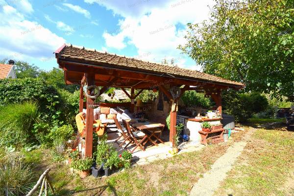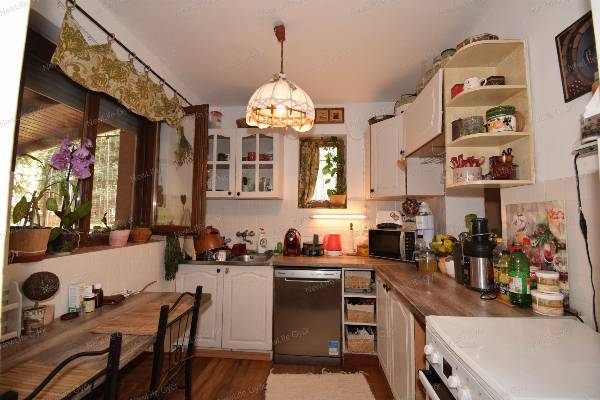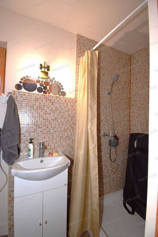 Győr-Moson-Sopron vármegye, Győrszentiván, eladó családi ház, különálló, üzleti célra alkalmas kisházzal Az ingatlanra támogatott hitel és a CSOK nem vehető fel. Kb. 60% önerővel viszont lakáshitel igényelhető rá. Oka, hogy a telek zártkerti besorolású, az ingatlan viszont át lett minősítve lakóházzá. KÖRNYÉK, ELÉRHETŐSÉG Győrszentiván központjához közel található ez a ház, aszfaltos útról megközelíthető. Győr kb. 8 perc autóval elérhető, a településeket rendszeres buszjáratok kötik össze a várossal. ÉPÜLET, TELEK Az ingatlan művelés alól kivont, így a tulajdonátruházás zökkenőmentes. A telek 1728 m2, kétharmada körbekerített. Víz, villany (32A) és a gáz is bevezetésre került. Szennyvízelvezetés zárt rendszerű derítőbe történik. Az előkertben épült fel egy szigetelt, betoncserép fedésű 18 m2 méretű kisház, melyben jelenleg masszázs szolgáltatás vehető igénybe. Ebben az épületben külön toalett, mosdó és zuhanyzó is megtalálható, illetve egy hűtő-fűtő klíma. A telek zárt kert besorolású, viszont a korábban itt álló épületet a 2000-es évek elején bővítettek, felújítottak a tulajdonosai, koszorút kapott az épület és a tetőtér is beépült. A tulajdoni lapon is látható lakóház funkciót kapott így kb 50%-ban hitelezhető (banktól leinformált adat!) A lakóházba egy fedett, kb 8 m2-es teraszon keresztül léphetünk be. Az alapterület bruttó 71 (nettó: 60 m2). Tetőtér bruttó: 51 (hasznos: kb 20 m2) Elosztása a jelenlegi formában: tágas nappali étkezővel, konyha, hálószoba, fürdőszoba káddal toalettel és egy kis kamra. A nappaliból tudunk egy fából készült íves lépcsőn felmenni a tetőtérbe, ahol két szoba és egy gardrób helyiség került kialakításra. A ház fűtése kombi gázkazánnal megoldott radiátoros hőleadással. (fűtési költsége rendkívül alacsony, előző évben 6000 Ft/hó átalányt fizetett a tulajdonos.) Rendelkezésre áll egy vízteres kandalló, mely szintén a fűtésrendszerbe kapcsolható. Igény esetén pedig a nappaliban lévő hűtő-fűtő klímával is elérhetjük a kívánt kellemes hőfokot. A ház 30 cm-es tégla falazattal épült, melyre 10 cm szigetelés került. Ablakok, ajtók hő és hangszigetelt, fából készültek redőnnyel, szúnyoghálóval, szép állapotúak. A ház mögött megtalálható egy kis díszpatak aranyhalakkal. Ezt követően szintén balkéz felől egy oldalról nyitott nyári konyha következik kemencével, mosogatóval, sparhelttel. A fa szerkezetű filagória (kb 20 m2) betoncserépfedést kapott, nagyszerű hely ez baráti összejövetelekre, kinti főzőcskére. A kiülő mögött található egy 3 személyes jakuzzi, ami szintén marad, ha igény van rá. Tovább haladva a telken jobbkéz felől beton alapra épült egy 18 m2-es, könnyűszerkezetes szerszámtároló, szintén betoncserép fedéssel, ennek egyik oldalához csatlakozik egy fedett, oldalról nyitott tároló. A telek hátsó részében körbekerített tyúkól és veteményes található, illetve sok gyümölcsfa, míg a telek végét egy keskeny akácos fasor határolja. MIÉRT EZT VÁLASZD? Mert 8 percre Győrtől, 6 percre az Auditól, csendes, nyugodt környezetben található, üzleti célú ingatlan is található a telken, szigetelt ház, melyben három féle fűtési alternatíva is működik. Egy családnak kiváló méretű ház, csodás kerttel. A jelen hirdetésben rögzített, az ingatlannal kapcsolatos adatok, információk, Megbízó tájékoztatása alapján kerültek meghatározásra. Irodánkban az alábbiakkal tudjuk segíteni a gyors és megbízható ügyintézést: -bankfüggetlen hitelügyintézés, CSOK Plusz -energetikai tanúsítvány -értékbecslés -ügyvédi szerződések, jogi tanácsadás -építész, tervezés, kivitelezés, felújítás, villanyszerelés