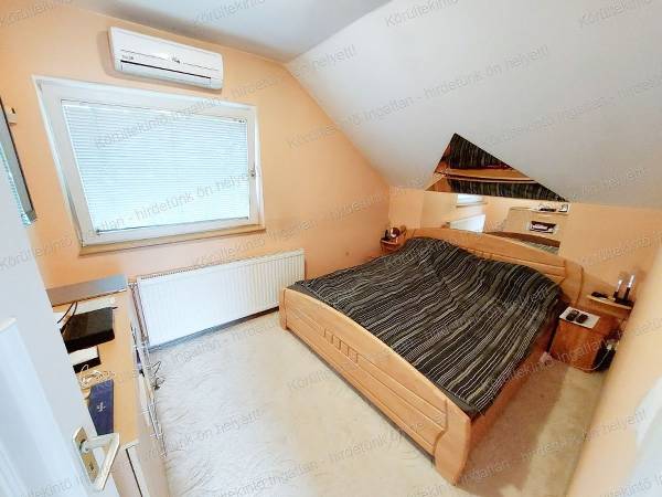 Referens: Elisher Nándor +36202449544 http://www.korultekintoingatlan.hu/adatlap.php?id=26HP5120 Pócsmegyer-Surány árvíztől mentes területén 1105 nm-es telken minőségi családi ház eladó. Város:Pócsmegyer Ingatlan jellege:Ház Ház típusa:Családi ház Nappalik száma:1 Egyéb szobák száma:3 Pince, tároló:Nincs Többgenerációs:Nem Hasznos lakóterület:150 m2 Telek területe:1105 m2 Állapot:Kiváló Közmű:Víz, Villany, Gáz, Csatorna Parkolási lehetőség:Garázsban Fűtés:gázkazán Pócsmegyer-Surány árvíztől mentes területén 1105 nm-es telken minőségi családi ház eladó. A klimatizált ház földszintjén kapott helyet az amerikai konyhás nappali, továbbá egy zuhanyzós fürdő. Az emeleten újabb nappali található biliárd asztallal, valamint két háló és egy kádas fürdő. A tetőtérben kapott helyet a wellness részleg, itt egy nagy szobában kondigép, szolárium, valamint szauna és zuhanyzó található. A ház fűtését gáz cirkó biztosítja. A telek két helyrajzi számon szerepel, ebből az egyiken (546 nm) salakos teniszpálya, a másikon (559 nm) a három szintes családi ház dupla garázzsal, kerti medencével, télikerttel, benne jacuzzival. A kert automata öntözőrendszerrel ellátott. Mindkét telek árvíztől teljesen mentes. Teljes kínálatunkat honlapunkon tekintheti meg: http://www.korultekinto.hu