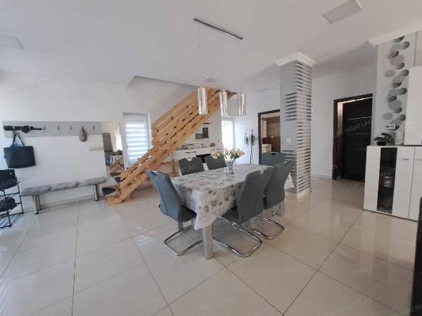 Nyíregyházán a Tünde utca közelében eladó egy 2022-ben épült, DUPLAKOMFORTOS, szintes,140 nm-es, nappali - amerikai konyha + 4 szobás ÖNÁLLÓ CSALÁDI HÁZ 576 nm-es telken! Az ingatlan főbb jellemzői: - Porotherm 30-as tégla falazatú, 20 cm-es homlokzati szigeteléssel ellátva, - fokozottan hőszigetelt, REHAU 3 rétegű nyílászárók, belül fehér, kívül antracit színben, - fűtése Bosch Condens WT kondenzációs gázkazánnal megoldott, minden helyiségben padlófűtéssel, - TONDACH, antracit színű cseréptető, mohásodásgátló felületkezeléssel ellátva, - födémen 20 cm-es szigetelés, - helységei: nappali - amerikai konyha-étkező, 4 különnyíló szoba, 2 db fürdőszoba, 2db Wc, nagyméretű galéria, 10 nm-es nyitott terasz - 2 db 5,4 kW-os Gree hűtő-fűtő klíma, - Minőségi, magasfényű fehér beépített konyhabútor, Bosch és Gorenje háztartási gépekkel, - rejtett tokos, antracit színű redőny, beépített szúnyoghálóval, - rövid határidővel költözhető, Díjmentes hitel, OTTHON START, Babaváró, Biztosítások ügyintézése! Amennyiben hirdetésem felkeltette az érdeklődését keressen bizalommal! Ügyfeleink számára minden szolgáltatásunk DÍJMENTES! Tel:+36 30 579 6521 Lehoczki Mihály Ingatlanközvetítő