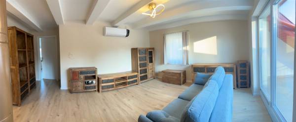 Kiadó igényes, felújított lakás Rómaifürdőn!Közösköltség nincs! Rómaifürdő zöldövezeti részén, a strand közelében, hosszú távra kiadó egy különleges hangulatú, második emeleti, teraszos 75m²-es, nappali + 2 szobás lakás egy háromlakásos házban. Az ingatlan nemrég esett át teljes körű felújításon – minőségi kivitelezéssel, modern gépészettel és igényes belső kialakítással. Főbb jellemzők: •tágas, világos nappali •modern, gépesített konyha (mosogatógép, sütő, főzőlap, beépített mikró és hűtő, páraelszívó) •kádas fürdőszoba •előszoba beépített szekrénnyel Extrák: * Bútorozott ( egyik hálószoba üres) •3 rétegű ablakok redőnnyel és szúnyoghálóval, a nagy üvegfelületeknél motoros működtetés •Hőszivattyús padlófűtés + mennyezethűtés – mindkettő egyedi mérővel •Egyedi víz- és villanyfogyasztás •Parkolás az utcán ingyenesen Elhelyezkedés: •34-es buszmegálló: 3 perc •HÉV (Rómaifürdő): 7 perc séta •Nyugodt környezet, mégis kiváló közlekedés