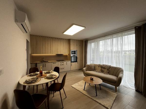 Tulajdonostól eladó Mosonmagyaróvár egyik legkedveltebb, dinamikusan fejlődő részén, a Gyöngyös lakóparkban egy igazi kis ékszerdoboz – földszinti, 30 m²-es lakás, saját, 30 m²-es kizárólagos használatú kerttel és terasszal, valamint saját felszíni parkolóval. Ez az ingatlan minden részletében a minőségről és a praktikumról szól. Teljes bútorzattal és használati tárgyakkal együtt eladó, így tényleg csak a bőröndöt kell hoznod – és máris költözhetsz! Főbb jellemzők: 30 m² lakótér + 30 m² saját kert és terasz Teljesen bútorozott – a vételár tartalmazza az összes bútort és használati eszközt Te lehetsz az első lakója! Minden vadonatúj, garanciális Hőszivattyús fűtés padlófűtéssel, fan-coil hűtőrendszer a nyári komfortért Egy légterű, mégis ízlésesen szeparált hálórésszel Műanyag nyílászárók elektromos redőnnyel 15 cm homlokzati szigetelés – alacsony rezsi Közös költség tartalmazza a kertgondozást – még a fűnyírással sem kell törődnöd Saját felszíni parkolóhely az árban Közös tároló használata Miért a Gyöngyös villapark? Mosonmagyaróvár egyik legdinamikusabban fejlődő és legkeresettebb városrésze, ahol modern társasházak, széles utcák, zöldövezet és kiváló infrastruktúra vár. Csendes, biztonságos környék, mégis közel mindenhez – ideális választás egyedülállóknak, fiatal pároknak vagy befektetésre is! Tökéletes választás, ha... Nem szeretnél bajlódni a berendezéssel – itt minden készen áll Szereted a modern, alacsony fenntartású otthonokat Fontos a saját kert, de nem akarsz kertészkedni Olyan helyen élnél, amit most mindenki keres Ne maradj le erről a kivételes lehetőségről! Hívj most, és nézd meg ezt a minden szempontból vonzó kulcsrakész, hangulatos kis lakást – garantáltan beleszeretsz már az első pillanatban! Időpont egyeztetés rugalmasan, akár hétvégén is!