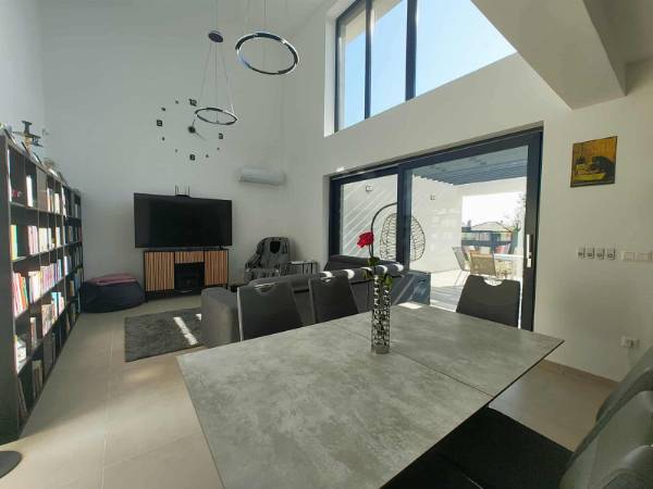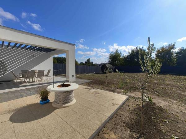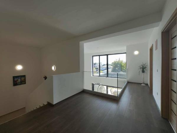 EXKLUZÍV ÖNÁLLÓ CSALÁDI HÁZ KERTVÁROSBAN! Ajánlom figyelmébe ezt a gyönyörű, modern stílusú önálló családi házat! Fontos, hogy az ingatlanvásárlás hosszú távon is értékálló befektetés legyen! Az Otthon megtalálása egy Jó érzés, amikor megérkezik és megszületik a döntés, ami valóban majd egy Új Életre ad lehetőséget és egy Új Otthont jelent. Kiváló adottságú telek előnyeit figyelembe véve alaposan átgondolt tervezés alapján épült ingatlan benapozottsága optimális. Nyíregyháza kedvelt részén kínálunk eladásra 810 nm-es telken egy nappali + 4 szobás + gardrób + dupla garázsos, 225 nm-es új építésű családi házat. Földszinten konyha étkezővel, kamra, nappali, egy szoba, fürdőszoba, WC, tároló, 1 terasz, dupla garázs. Emeleten: 3 szoba, 2 fürdőszoba, 2 terasz. Ez a családi ház, amely egy funkcionálisan jól használható kertben helyezkedik el, nagy teraszokkal és tágas, jó elrendezésű belső terekkel, kényelmes méretű helyiségekkel rendelkezik. A ház teljes egészére jellemzők a nagyívű, tágas terek, melyek a praktikus tervezésnek, helykihasználásnak köszönhetően otthonosságot sugároznak. Közlekedés: A ház a város egyik legexkluzívabb környékén épült: 5-10 perc sétával elérhető óvoda, iskola, gyógyszertár, orvosi rendelő, élelmiszerbolt, pékség, cukrászda. Buszmegálló 1 perc séta távolságra. Forgalomtól függően autóval 5-7 perc Nyíregyháza belvárosa és az M3 autópálya is. Műszaki jellemzők: A ház építése során a legmagasabb műszaki és energiahatékonysági elvárások kerülnek figyelembevételre. Az alapos tervezés ötvözi a városi kényelmet a családbarát környezettel. Műszaki adatok: Porotherm 30 N+F Rapid Dryfix tégla Magastető, kettős, hornyolt, sík, antracit színű betoncserép Homlokzati hőszigetelő rendszer 15 cm vastag expandált grafitos polisztirol felhasználásával Az épület fűtését (minden helységben padlófűtés) 1db 11 kW-os levegős hőszivattyú biztosítja Nappaliban és a szobákban split klíma biztosítja a hűtést Antracit színű, melegperemes, három rétegű üvegezésű, hőszigetelt, műanyag nyílászárók (rejtett tokos elektromos redőnnyel), a terasznál toló kivitelben Beltéri ajtók CPL felületű, tele kivitelben választott színben, 2 db háromrészes pánttal Homlokzati nyílászárókkal megegyező színben, műanyag bejárati ajtó Szekcionált automata garázskapu antracit színben Kerámia és laminált padlók Kamera- és riasztórendszer LED világítás Napelem előkészítés Elektromos autótöltő előkészítés Automata öntözőrendszer előkészítés Méretek: Az épület nettó alapterülete összesen, teraszokkal és erkélyekkel 194,77 m2, plusz dupla garázs 31 m2, kert tervezett zöldfelülete 553,61 m2. A ház 2 szintes, a garázsból is megközelíthető földszinten egy szoba, nappali-konyha- étkező, kamra, WC-s zuhanyzó, mosókonyha, a lépcsőház alatt gépészeti helyiség található. Nagy méretű terasz (18,5 m2) kapcsolja össze a nappalit a kerttel. Az emeleten 3 szoba, különálló WC, fürdőszoba káddal, gardrób, 2 erkély (13 és 5 m2) és galéria kapott helyet. Kert: A házhoz (tervezett zöldfelület) 553,61 m2 kert tartozik, amelyben automata öntözőrendszer került előkészítésre. A nappalit a kerttel nagy méretű, déli fekvésű terasz kapcsolja össze. A beépített anyagok minőségének és a korszerű technológiának köszönhetően az ingatlan energiatakarékos, gazdaságosan üzemeltethető. Ajánlom mindazon több gyerekes házaspároknak, pároknak, akik egy igazán kiváló, jól megközelíthető, jó adottságokkal rendelkező, csendes, nyugodt helyen szeretnék élni a mindennapjaikat. Ha szeretne kiszabadulni a városi körforgásból, de mégsem akar végleg elszakadni tőle, akkor a legjobb választás ez a környék, ahol az ébredés után saját teraszán kortyolhatja a reggeli kávéját, szippanthatja magába a friss levegőt és hallgathatja a madarak csicsergését. A hirdetésben szereplő adatok, információk, képek, alaprajzok stb... tájékoztató jellegűek! Irodánk az esetleges elírásokért felelősséget nem tud vállalni! Tájékoztatjuk a kedves Érdeklődőket, hogy az ingatlan hirdetésében szereplő telefonszám felhívásával Önök hozzájárulnak személyes adataik (név, telefonszám), a hirdetést feladó Mindenamiház Kft. - által a bizalmas kezeléshez és nyilvántartáshoz. Amennyiben az ajánlatom felkeltette érdeklődését, kérem keressen telefonon. Szép napot és sikeres vásárlást kívánok Önnek! Köszönöm, hogy időt szánt hirdetésemre!