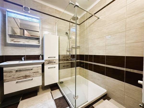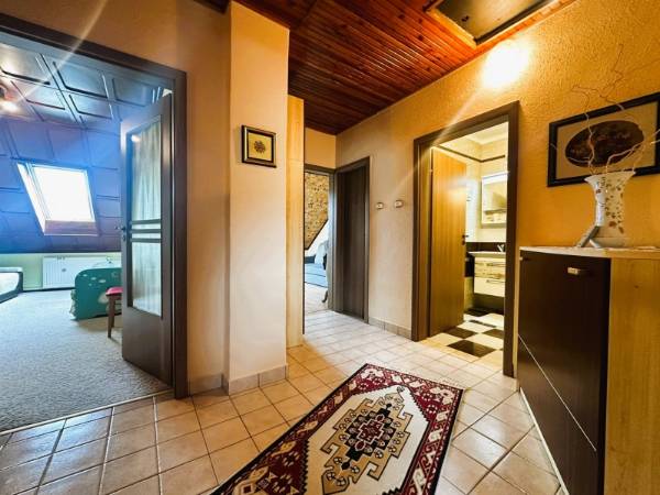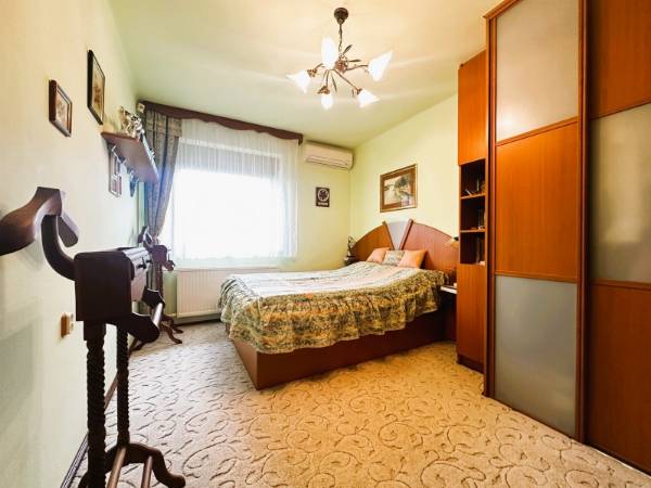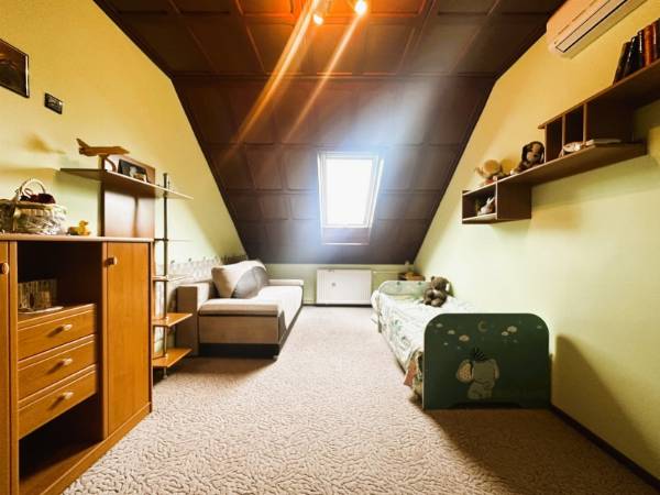 Mecsekoldali panoráma – igényes, háromszintes családi ház dupla garázzsal és kis kerttel! Ha mindig is olyan otthonra vágyott, ahol nyugalom, elegancia és praktikum találkozik, akkor ez a Mecsekoldal csendes, zöldövezeti utcájában található, 179 m²-es, háromszintes, 4 szoba + nappalis lakóház tökéletes választás lehet. A ház a 90-es évek elején épült, de azóta folyamatosan karbantartott és korszerűsített, így ma is kiváló műszaki és esztétikai állapotban várja új tulajdonosát. Két másik lakóegység közé épült, ezért a fűtési- és hűtési költségek kedvezőek, a tájolás pedig ideális – minden szinten világos, barátságos terek jellemzik. A lakótér központi része a tágas, kertkapcsolatos nappali és étkezős konyha, ahol a családi élet természetes központja alakul ki. A konyha gépesített, beépített bútorai igényesek és kifogástalan állapotúak, a fedett terasz és kis, virágos kert pedig igazi oázis a mindennapokban. Az emeleti hálószobák tágasak, csendesek, mindhárom klimatizált, és az otthoni munkavégzéshez is ideálisak. Két fürdőszoba (egy zuhanyzós és egy kádas) szolgálja a kényelmet, külön WC-kkel mindkét lakószinten. Az alsó szinten egy dupla, aknás garázs helyezkedik el elektromos kapuval, valamint kamra és fűtőhelyiség is található itt – minden praktikus megoldás adott egy kényelmes családi élethez. Műszaki tartalom: - 6 kW napelem, szaldó elszámolásban - 3 rétegű, hőszigetelt műanyag nyílászárók, fém redőnnyel, szúnyoghálóval - új Buderus kondenzációs kazán + elektromos kazán - Poroton 38-as falazat, Bramac tetőcserép - 2 db új Ariston villanybojler - klimatizált helyiségek minden szinten - gépesített, modern konyha - az ingatlan kiváló műszaki állapotban, azonnal költözhető A ház rendezett, nyugodt utcában található, kiváló közlekedéssel, barátságos szomszédsággal. Tökéletes választás gyermekes családoknak, két generáció számára, vagy azoknak, akik szeretnék élvezni a Mecsekoldal biztonságos, zöld környezetét, miközben pár perc alatt elérhető a város központja. Ez az otthon nemcsak egy ház – életminőség. Tehermentes! Hívjon, tekintse meg és tegyen egy ajánlatot!