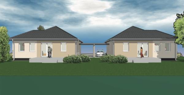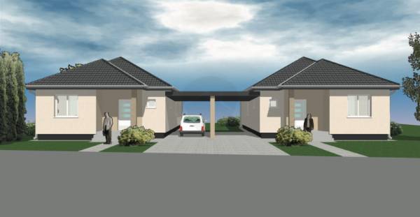 Kókán eladó 4db újépítésű ikerház külön kerített 530 m2 telkeken a Pincesor utcában! A házakat fedett gépkocsibeállóval kötik össze, így nincs közös fal. -Telek mérete: 530 m² -Nettó hasznos alapterület: 97 m² -Földszintes ikerfél Kivitelező és referencia: A kivitelező több azonos terv alapján készült ingatlant valósított meg Sülysápon és Kókán Elérhető támogatások: -CSOK Plusz -Otthon Start Szerkezet és szigetelés: -Falazat: 30 cm nútféderes tégla -Födém: fafödém -Tetőfedés: antracit színű betoncserép -Homlokzat: 15 cm EPS hőszigetelés -Padló: 10 cm Austrotherm AT-N100 szigetelés -Vízszintes födém: 25 cm ásványgyapot szigetelés Nyílászárók: -Hat légkamrás, háromrétegű üvegezéssel szerelt ablakok Fűtés: -Monoblokkos hőszivattyús rendszer -Padlófűtés Alap műszaki tartalom (választható keretösszegekig): -Hidegburkolat: 3.000 Ft/m² -Melegburkolat: 3.000 Ft/m² -Csaptelepek: 15.000 Ft/db -Kád vagy zuhanyzó: 40.000 Ft -Beltéri ajtók: 35.000 Ft/db Elektromos kiépítés: -Szobánként 3 konnektor -Nappaliban 4 konnektor + internet és kábel TV kiállás -Konyhában 6 konnektor -Világítás helyiségenként 1 pont -Kábeltévé előkészítés További lehetőségek: -Magasabb kategóriájú műszaki tartalom is választható a különbözet finanszírozásával -Riasztórendszer előkészítés -Kapumozgató elektronika előkészítés Igény esetén komplett tervdokumentáció és részletes műszaki leírás biztosított Átadás: 2026. II. negyedév Teljes körű ingyenes tanácsadás, hitelügyintézés Intor Ingatlan