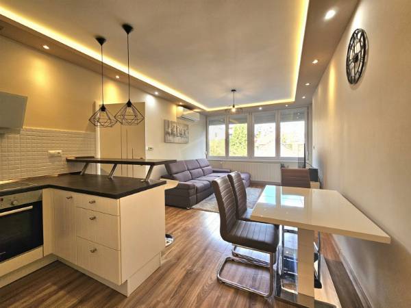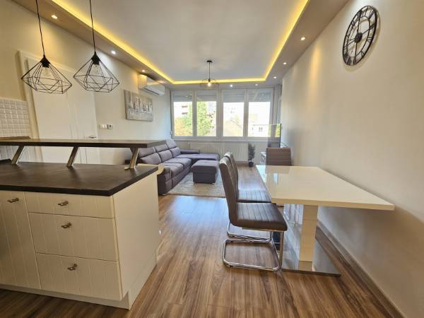 A lakás egy csendes társasház 2. emeletén található, az épületben van LIFT! Nagy előnye, hogy az amerikai konyhás étkezős nappaliból külön nyílik még 2 hálószoba, valamint egy keleti fekvésű erkély, mely belső parkra néz. A szobában minőségi franciaágy matraccal gondoskodik a pihentető alvásról. A lakás igényesen felújított jól átgondolt terekkel rendelkezik. A fürdőszoba és a wc is külön helyiségekben található. A fürdőszoba két irányból is megközelíthető. A lakás bútorozott és gépesített, a konyha modern gépekkel, a szobák kényelmes gardróbszekrényekkel lettek ellátva, így a beköltözéshez már csak a személyes dolgainkat kell hozni. A lakás a jó közlekedésének köszönhetően kiváló lokációval bír és ehhez társul még a belvárosi történelmi hangulat, melyet minden nap átélhetünk. Közelben megtalálható: bevásárlóközpontok, piac, parkok, oktatási intézmények, éttermek, gyakorlatilag minden, amire szükségünk lehet. A lakás rezsije nagyon kedvező! A lakásban a dohányzás nem megengedett és házikedvencet sem lehet hozni. Szerződéskötéskor 2 havi kaució és az adott havi bérleti díj megfizetése szükséges, valamint közjegyzői kiköltözési nyilatkozat tétele.