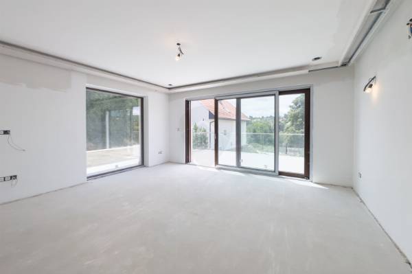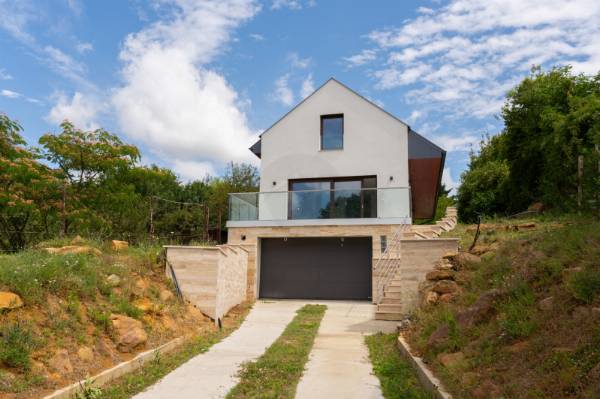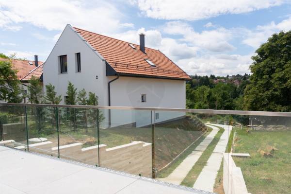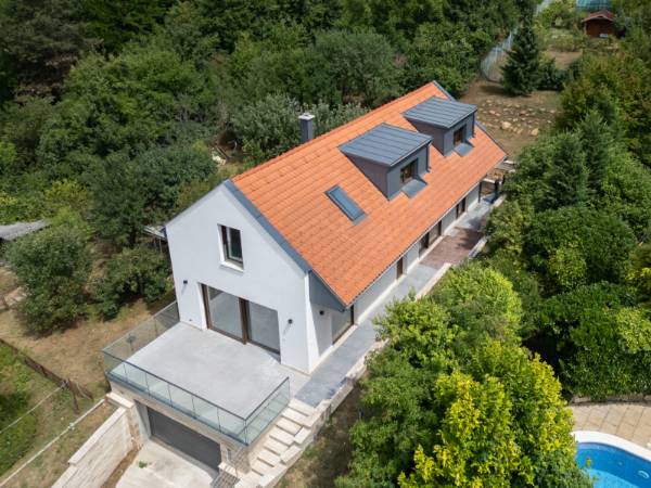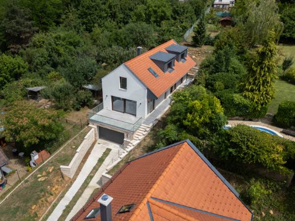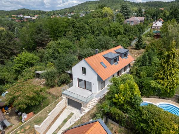 Budán, Pesthidegkút-Ófalu egyik legszebb, legnyugodtabb részén, templom tér, Klebelsberg Kultúrkúria és a Széphalom bevásárlóközpont közelében, panorámás, 95%-os készültségű , újépítésű családi ház eladó. Az ingatlan osztatlan közös tulajdonú telken helyezkedik el, jogi használati megosztással. Főbb adatok: - Telekrész használat: 742 m² (kizárólagos használat) - Szobák száma: 4+1 (nappali + 3 háló + hobbiszoba + többcélú helyiségek) - Energiahatékonyság: AA++ – közel nulla energiaigény Állapot: 95%-os készültség – burkolatok, szaniterek, konyha, kert befejezése az új tulajdonos igényei szerint alakítható, viszont a vételár részét képezi. Felszereltség, extrák: - Hőszivattyús hűtés-fűtés, fan-coil rendszerrel - Hővisszanyerős szellőztetés (Wolf300) - 3 rétegű üvegezésű nyílászárók, motoros alumínium redőnyök - Központi porszívó, riasztó- és napelem előkészítés - Elektromos Hörmann garázskapu, távirányítás - 2 állásos garázs + felszíni parkoló saját használatú telken - 5 m³ esővízgyűjtő, automata öntözés előkészítés - Igényes kerítés, világítás, járda és kerti burkolatok Elrendezés: - Pince: Garázs, hobbiszoba, zuhanyzó-WC, háztartási helyiség - Földszint: Nappali, étkező-konyha, hálószoba, zuhanyzó-WC, gardrób, 2 irányba tájolt terasz - Tetőtér: 2 hálószoba, fürdőszoba, többcélú előtér Elhelyezkedés, infrastruktúra: - Kiváló tömegközlekedés: buszmegálló 500 méteren belül - Óvoda, iskola, bolt, pékség néhány perces sétára - Francia Iskola 650 méterre, 9 perc gyalog - Csendes zsákutca, barátságos szomszédság, zöld környezet Rugalmas befejezési lehetőség, alacsony fenntartási költségek, kiváló minőség – új építésű otthon álomszép környezetben! Hívjon bizalommal a megtekintésért és további részletekért