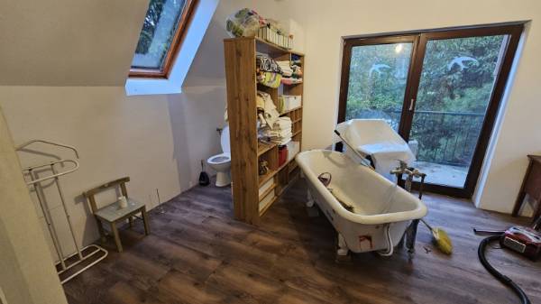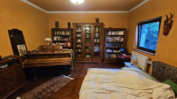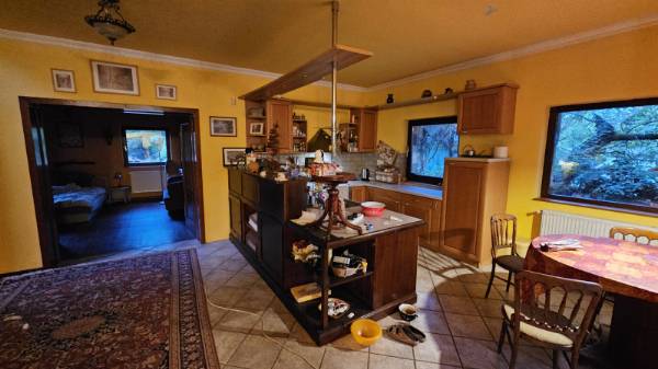 Solymár egyik legszebb részén, Kerekhegyen kínálunk eladásra egy igazán különleges, 290 m²-es családi otthont, amely a tágas élettér, a természet közelsége és az exkluzív kényelmi megoldások tökéletes harmóniáját nyújtja. A ház öt szobával és két félszobával biztosít elegendő teret a nagyobb család számára is, miközben a közös helyiségek – például a kandallós nappali és az amerikai konyhás, konyhaszigetes étkező – a közös pillanatok meghitt színterei. A 12 m²-es teraszról és a 6 m²-es erkélyről lélegzetelállító panoráma tárul a környező hegyekre, amely minden évszakban különleges hangulatot áraszt. Az ingatlan igazi különlegessége a fedett botanikus kert, amely a garázsból nyílik, és egész évben a természet hangulatát hozza az otthon falai közé. A gondozott kertben egy kiépített kerti tó is helyet kapott, amely még inkább a nyugalom szigetévé varázsolja az udvart. A wellness élményt a kertből elérhető szauna teszi teljessé, így a kikapcsolódás minden nap része lehet. A praktikumra is gondoltak: a kétállásos garázs kényelmes parkolási lehetőséget kínál, a gázkazán és a légkondicionálók pedig a modern otthon kényelmét biztosítják. A bútorozás megbeszélés tárgya, így az új tulajdonos saját ízlésére formálhatja a belső tereket. Környék és elhelyezkedés Solymár Kerekhegy városrésze a nyugodt, biztonságos és családbarát környezetéről ismert. A környék zöldövezeti adottságai ideális helyszínt kínálnak a gyermekek számára is, akik biztonságosan játszhatnak a közeli parkokban. A közlekedési lehetőségek kiválóak: Budapest belvárosa autóval vagy tömegközlekedéssel is gyorsan elérhető, így a mindennapi ingázás sem jelent gondot. A környék teljes ellátottsággal rendelkezik – iskolák, boltok, egészségügyi intézmények egyaránt könnyen elérhetők. Összefoglalva Ez az ingatlan nem csupán egy ház, hanem egy életstílus, amely a hegyvidéki nyugalmat és a modern városi kényelmet ötvözi. A bővítési lehetőségek további rugalmasságot biztosítanak, így az otthon tökéletesen alakítható a jövőbeni igényekhez. Az ingatlan tehermentes és azonnal birtokba vehető, így új lakója rövid időn belül élvezheti mindazt, amit ez a különleges otthon kínál.