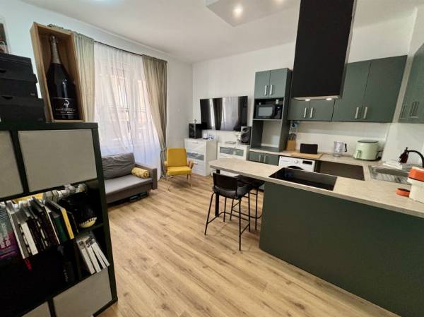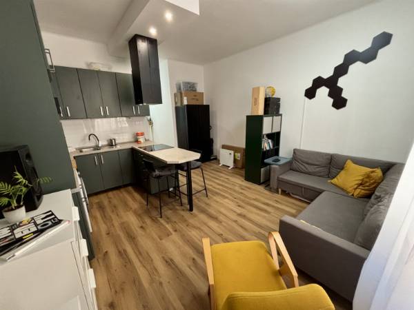 ELADÁSRA kínálom ezt a FRISSEN, TELJES KÖRŰEN FELÚJÍTOTT, modern, 38 m² alapterületű, 1+1 félszobás, ERKÉLYES ingatlant a méltán közkedvelt BELSŐ-ERZSÉBETVÁROS szívében, a csendes Nyár utcában. A kulcsrakész ingatlan egy rendezett, kis lakóközösségű, jelentős megtakarításokkal rendelkező, LIFTES társasház második emeletén található. KIVÁLÓ BEFEKTETÉS lehet akár rövid, akár hosszú távú kiadásra, vagy saját célra egyetemistáknak, pároknak. A felújítás során a lakás praktikus, élhető elrendezés kapott, a bejárati ajtón belépve az előtérbe érünk, velünk szemben található a letisztult, tágas, zuhanyzós fürdő, illetve külön helyiségben a WC. Tőlünk jobbra nyílik a hálószoba, melyhez a 2 m²-es, hangulatos erkély tartozik, ahol zöldre nyíló kilátás mellett jól esik egy reggeli kávé, vagy egy fárasztó nap után egy pohár bor. A hálóban helyet kapott egy praktikus beépített gardrób, melynek köszönhetően a tárolás is biztosított. A hálóval szemben, az előtértől balra az amerikai konyhás nappali található, egyedi tervezésű konyhabútorral, illetve teljes felszereltséggel. Az otthon kényelmét számos okos megoldás biztosítja, köztük intelligens fények, robotporszívó, kamera, okos zár és hűtő-fűtő klíma. A felújítás során minden nyílászáró cserélve lett, valamint új, biztonsági bejárati ajtó került beépítésre. A villamos hálózat teljes cseréje és bővítése 32 amperig megtörtént, a víz- és szennyvízvezetékek szintén újak. Az ár tartalmazza a teljes berendezést és az összes vadonatúj háztartási gépet. A lakásban mosó- és szárítógép, elektromos főzőlap, sütő, elszívó, mosogatógép, beépített mikrohullámú sütő, digitális vízmelegítő is a leendő tulajdonos rendelkezésére áll. A megfelelő hőmérsékletről két elektromos fűtőpanel gondoskodik. A gáz jelenleg hivatalosan ki van kötve, de igény szerint bármikor könnyedén visszaállítható. Az ingatlan azonnal költözhető a képeken látható állapotban. Tartozik még az ingatlanhoz egy körülbelül két négyzetméteres ÖNÁLLÓ PINCEI TÁROLÓ is, mely a VÉTELÁR RÉSZÉT KÉPEZI. Az ingatlanban található bútorzat megegyezés szerint a vételáron felül megvásárolandó. A közös költség 15.000 Forint, a lakás vízórás. Az ingatlan értékét nagyban növeli kiemelkedő elhelyezkedése: a Deák tér és a Blaha Lujza tér pár perces sétával elérhető. Egy közeli park kutyafuttatóval, a Spar, a Vásárcsarnok, számos étterem, kávézó, üzlet és szórakozóhely mind karnyújtásnyira található. Óvoda és iskola szintén néhány perc alatt megközelíthető. A gördülékeny közlekedést a számos buszjárat és a 4-es 6-os villamos biztosítja. Amennyiben ez a KIEMELKEDŐ LOKÁCIÓVAL rendelkező, modern otthon felkeltette az érdeklődését, keressen bizalommal, szívesen mutatom! AUER Ingatlan