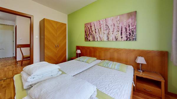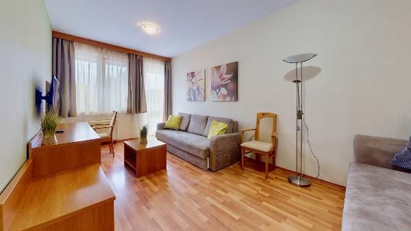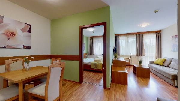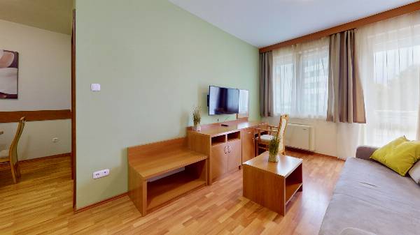 Hajdúszoboszló, gyógyfürdőtől 550 méterre, 2008-as építésű, liftes társasházban lévő, 55,34 m2-es két szobával, fürdőszobával, konyhával, első emeleti, nagy erkélyes lakás, 4 személy elhelyezésére alkalmasan, teljes szállodai felszereléssel eladó. A lakáshoz tartozik egy teremgarázs beálló, mely vásárlása kötelező 7,4 MFt-ért. A lakók díjmentesen használhatják a szálloda wellness részlegét (finn- és infra-szauna, gőzkabin, szabadtéri medencék). Készpénzes vevőket várunk.