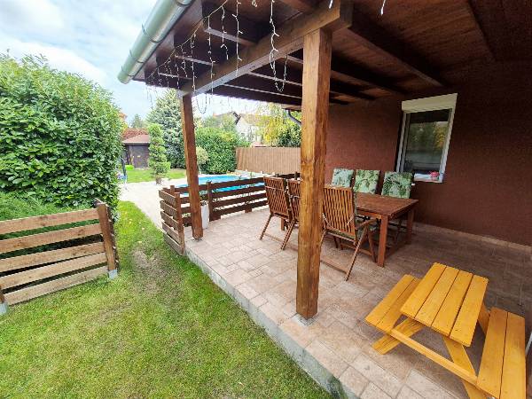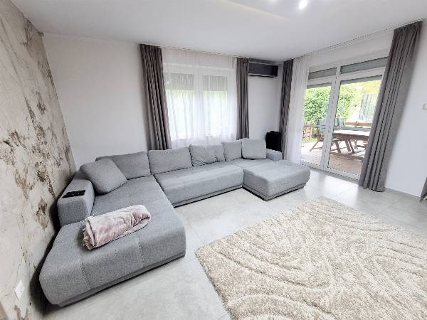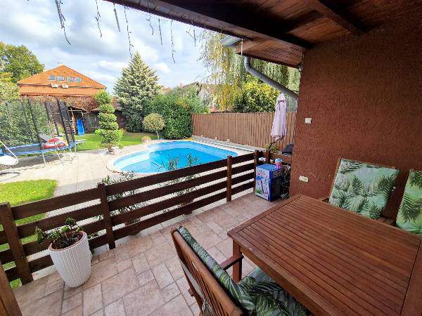 Eladó ikerházi lakás Dunaharaszti legszebb részén, tájvédelmi terület szomszédságában! Dunaharaszti egyik legnyugodtabb mellékutcájában, 2010-ben DUPLA FALLAL épült, 106 m² alapterületű, EGYSZINTES, alacsony rezsijű, TELJESEN FELÚJÍTOTT ikerházi lakás eladó, 481 m²-es önálló, parkosított kerttel és FŰTHETŐ MEDENCÉVEL, ELEKROMOS AUTÓTÖLTŐVEL eladó! Az ingatlan igazi ÁLOMOTTHON – ahol a kényelem, a biztonság és a természetközelség egyszerre van jelen. ** Főbb adatok •Telekméret: 481 m² •Lakóterület: 97 m² •Fedett terasz: 18,32 m² •Két darab kerti tároló: 1db. 2m2 és egy 5m2-es •Építés éve: 2010 •Felújítva: 2020 és 2024 • Kedvező rezsi költség:(villany 26.600 Ft, gáz 12.000 Ft, víz 8.000 Ft/hó) * Jogviszony: társasház, külön albetétet képvisel Helyiségek elosztása: •TÁGAS ELŐSZOBA (4,97m2) fogadja az érkezőket, ahol, egy sok mindent elnyelő faltól falig beépített szekrény került kialakításra, tovább lépe egy közlekedő folyosóról. •NAGYMÉRETŰ AMERIKAI KONYHÁS NAPPALI (40m2) •3 HÁLÓSZOBA (14,82m2, 10,24m2, 7,73m2) •FÜRDŐSZOBA (5,96m2) melyben plusz egy wc, új épített zuhany, kád és egy nagyméretű mosdó szekrénnyel érhető el. •KÜLÖN GARDÓB (2,53m2)beépített szekrénnyel •KÜLÖN MELLÉKHELYISÉG: 1,59m2 •HÁZTARTÁSI HELYIÉG (1,76m2) ahol a fűtési rendszer, mosógép, szárítógép és egy nyitott beépített szekrény is helyet kapott. Műszaki jellemzők: •FALAZAT: 38 cm yong tégla + hőszigetelő vakolat •FÖDÉM: fafödém, 3x10 cm üveggyapot szigeteléssel •PADLÁS: kb. 50 m², OSB burkolattal, világítással – kiváló tárolásra, szomszédtól elválasztott padlástér •NYÍLÁSZÁRÓK: 2 rétegű műanyag, redőnnyel és szúnyoghálóval •ELEKTROMOS HÁLÓZAT: 3x16 A •FŰTÉS: Westen víztartályos kondenzációs kombi gázkazán (2020ban cserélve) PADLÓFŰTÉS + RADIÁTROROS FŰTÉS •HŰTÉS: 4 db klíma (minden szobában + nappaliban) •BIZTONSÁG: riasztórendszer, full HD felbontású kamerarendszer, kültéri infrasorompó EXTRÁK AZ ÁRBAN: •Fűthető, épített medence •Automata öntözőrendszer + fúrt kút •Új térburkolat a medence körül •Játszótér, kerti sütögető, 2 db kerti tároló •18 m²-es fedett terasz •Motorizált, fűtött sínű tolókapu •BESEN típusú elektromos autó-töltő (szakszerű kiépítéssel) •2 állásos gépkocsibeálló (térkövezett, egymás melletti parkolás) •További 2 parkolóhely a ház előtt •Kandalló kiépítve a nappaliban, modern megjelenéssel •Kisállat-bejáró a bejárati ajtón – kutya/macska számára A FELSOROLTAK A VÉTELÁR RÉSZÉT KÉPEZIK -PARKOLÁS: telken belül 2 autó parkolása biztosított egymás mellett, térburkolattal ellátott terülten. A lakás előtt további 2 autó parkolása megoldott, úgyszintén térburkolattal burkolt felületen. -REZSI KÖLTSÉG: villany 26.600.-Ft/hó (csak otthoni elektromos autótöltés, medence víz forgatójával együtt), gáz: 12.000.-Ft/hó általány, víz: 8.000.-Ft/hó) -Miért különleges? Ez az otthon nemcsak gyönyörű, de praktikus is: alacsony fenntartás, biztonság, modern belső tér, gazdaságos épület, kiváló elrendezés és a természet közelsége és egy otthoni nyaralás a fűtőtt medencének és a hangulatos kertnek köszönhetően— mindez Dunaharaszti egyik legkedveltebb részén, kedves szomszédokkal, nyugodt, családias környezetben. ____________________ Álmai otthona várja – jöjjön el, és szeressen bele már az első pillanatban!