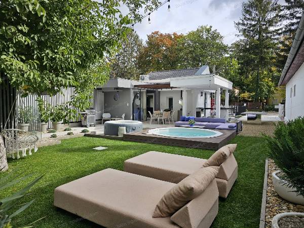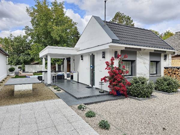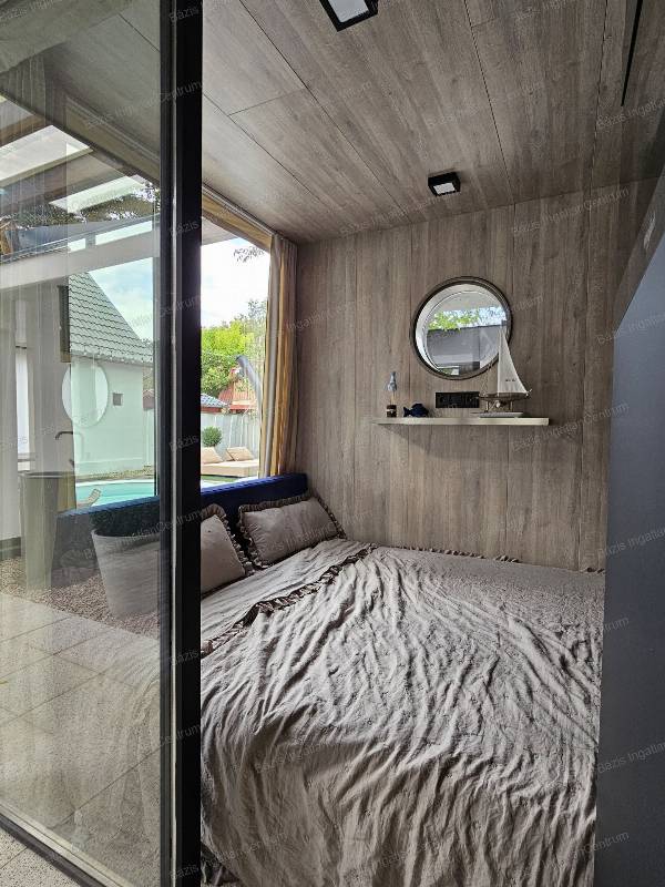 Bács-Kiskun megye Kunfehértó kedvelt üdülőterületén eladó egy 2024-ben teljeskörűen felújított, minőségi bútorokkal, gépekkel felszerelt nyaraló. A szigetelt, tégla falazatú ingatlanban egy légtérben került kialakításra a nappali, a konyha és az előszoba, ezen kívül egy háló, egy modern, esztétikus fürdőszoba, valamint egy WC kapott helyet a nyaralóban. Az igényesen beépített konyhabútor Whirlpool készülekekkel felszerelt (mosógép, mosogatógép,hűtőszekrény, páraelszívó, mikró). A fűtésről, valamint a nyári kellemes hőmérsékletről inverteres klíma gondoskodik. Az ingatlan egy 380 m2-es parkosított, gondozott udvaron helyezkedik el a kunfehértói strandtól néhány perc sétára. A házhoz tágas terasz kapcsolódik, mely tökéletes helyszín a pihenéshez vagy baráti összejövetelekhez a minőségi bútorzatnak köszönhetően. A teraszon egy borhűtő, kézmosó és egy projektor is rendelkezésre áll. A dísznövényekkel tarkított udvaron épített medence, jakuzzi, egy épített szauna, valamint egy állandó pingpong asztal is helyet kapott. A tehermentes ingatlan azonnal költözhető.