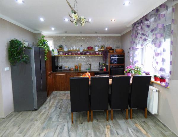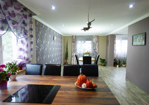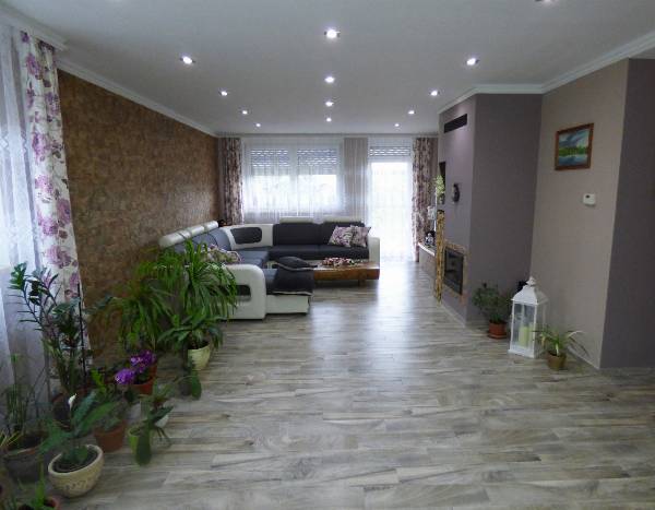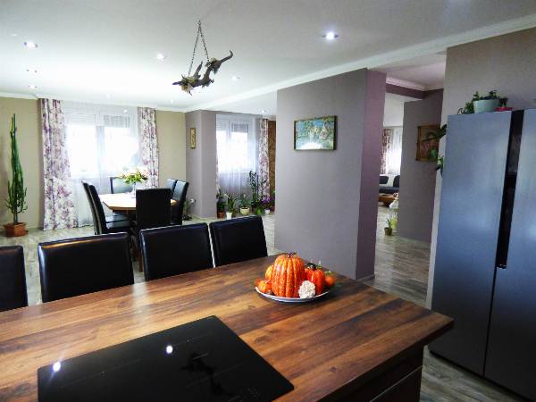 Az Eladó családi ház 1253 nm-es telken helyezkedik el, tégla építésű, a tető cseréppel fedett. Az udvarra automata kapun keresztül jutunk be, ahol több autó parkolására is van lehetőség. Az Eladó családi ház 3 szintes, ahol 4 szoba és egy tágas amerika konyhás nappali található. Méretének köszönhetően 2 generáció számára is tökéletesen megfelel. A bejárati ajtón belépve a földszinten találunk egy tágas előszobát, innen nyílik a mosókonyha, egy mosdó helyiség, a kazánház, ahol gázkazán és vegyes tüzelésű kazán biztosítja a téli hónapokban a meleget. Itt található még egy műhelynek kialakított helyiség, valamint a garázs. Az ajtó itt is távirányítóval működik. Az előszobától jobbra egy konyha helyezkedik el, innen ki tudunk menni a 35 nm-es fedett teraszra. A konyhában gáztűzhely van, ami palackos gázzal működik, arra az esetre, ha nem lenne áram, tökéletes megoldás. Az Eladó családi házban az emeleteket belső lépcsőház köti össze. Az első szinten találjuk a 60 nm-es amerikai konyhás nappalit, az étkezőt, ami méretéből adódóan családi összejövetelek, vendégek fogadására is alkalmas. A nappaliban kandalló is beépítésre került, ami még hangulatosabbá, melegebbé teszi az otthont. A beépített konyhabútor háztartási gépekkel felszerelt, indukciólapos főzőlap, sütő, beépített mikrohullámú sütő, mosogatógép, ami a földszinten elhelyezkedő konyhában is van, mind a berendezés részét képezi. Az amerikai konyhás nappalihoz tartozik még egy erkély, valamint ezen a szinten található még egy szoba és egy tágas fürdőszoba. A lépcsőházon keresztül jutunk fel a 3. szintre, a tetőtérbe. Itt 3 külön nyíló szoba található, valamint egy fürdőszoba. Az Eladó családi ház külső szigetelése 5 cm-es, a ház 4 évvel ezelőtt teljes felújításon esett át. Igényesen felújított, minden helyiségben a falak részben festettek, részben tapéta díszíti. A padlót járólappal burkolták, a fürdőszobákban a falak csempe borítást kaptak. A bejárati ajtó és az ablakok műanyag nyílászáróval felszereltek, míg a szobákba nyíló ajtók mind fából készültek. Minden ablakon redőny van. A hátsó kert 2 fedett terasszal rendelkezik valamint itt található egy kerti grillező is az épített medence mellett, ahol a nyári melegben minden nap kedvünkre élvezhetjük a fürdőzést. A medencében a víz mélysége 140 cm, hossza 6 m, szélessége 4m. A kertből szép kilátás nyílik a hegyoldalra. Az udvar részben füves, részben térkő borítja. Fenyőfa, gyümölcsfa egyaránt megtalálható. A kertben áll még egy faház, praktikusan lehet használni akár kerti gépek, eszközök tárolására. A házba ipari áram van bevezetve! Az ülőgarnitúra a nappaliban, 3 gardrób szekrény és a vízszűrő berendezés a vételár részét képezi. Az Eladó családi ház kamera rendszerrel van felszerelve, elhelyezkedése kiváló, vasútállomás, üzletek, autópálya feljáró mind a közelben van! Családok számára akár 2 generáció részére is tökéletes választás! Igényesen felújított, ide csak beköltözni kell! Adatbázisunkban számos eladó-kiadó ingatlan közül választhat. Személyre szabott ügyintézéssel, ügyvédi háttérrel állunk ügyfeleink rendelkezésére. 15 éves értékesítői és vezetői tapasztalat. Minden egy helyen, az ingatlan bemutatásától a kulcsátadásig! Hitelminősítés a Fő téri irodánkban a hét minden napján. Legyen közös a sikerünk!