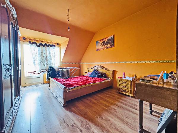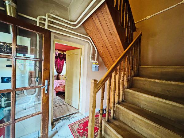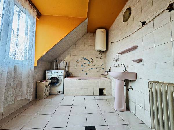 Debrecen, Nagy Sándor telep, tégla építésű, 2 szintes, felújítandó családi ház csendes utcában eladó. telek méret: 380 m2, parkosítható hátsó kert mintegy 230 m2, építési idő: 1996 építő anyag: HB 30 tégla, cserép héjazat, alapterület: 117 m2 szobaszám: 4 külön nyíló szoba + étkező konyha méretek: szobák: 19.4, 19.3, 16.2, 18.9 m2, étkező konyha 19.7 m2, elosztása: fsz.: étkező konyha, közlekedő, szoba emelet: 3 szoba, fürdő és wc egyben fűtése: gázkazán FÉG C24, radiátorok, Az étkező konyha és fürdő ablakait műanyagra cserélték, az épület rézvezetékekkel van kábelezve. gk. beállás: áthajtó garázs Az épület jól megépített, szerkezet stabil. Az emeleti szobák álló ablakokkal rendelkeznek, külön nyílóak, 2 háló erkély kapcsolatos. A ház felesleges térrabló megoldásoktól mentes, terasszal nem rendelkezik ugyan, de a lakó helyiségek tágasak, ezek maximalizálására fókuszáltak a tervezés során. A kert intim, ős fás, vadregényes, amely az áthajtó garázson keresztül közelíthető meg. Az ingatlan tehermentes, rövid határidővel birtokba vehető, az ár alkuképes.