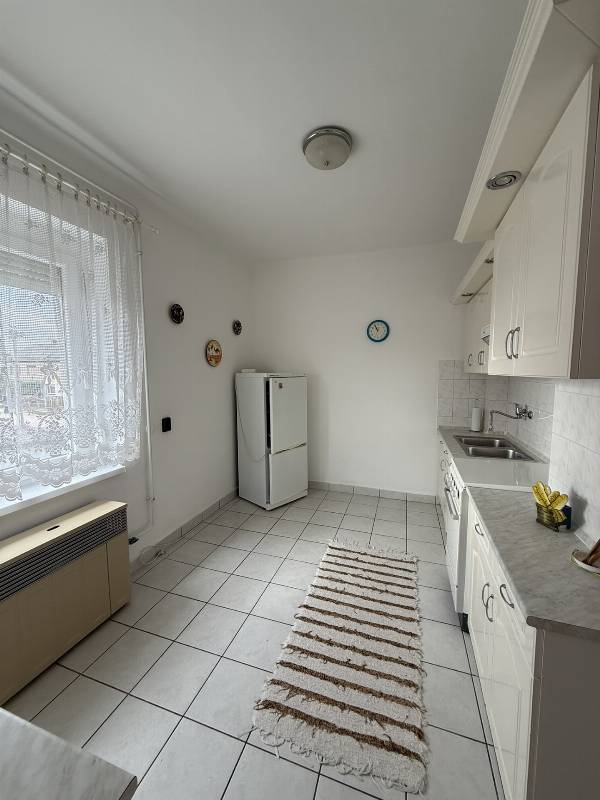 Tát, kertvárosi rész – 61 m²-es, gondosan karbantartott, 2 szobás lakás saját kerttel és garázzsal eladó! Tát csendes, kertvárosi részén, egy 4 lakásos, téglaépítésű társasház felső szintjén eladó egy 61 m²-es, jó állapotú, 2 szobás lakás. Elrendezése: 2 szoba, konyha, fürdőszoba, külön WC, kamra – jól kihasználható, praktikus elosztással. A lakáshoz tartozik egy kb. 500 m²-es saját kert, benne garázzsal és egy felújítandó nyárikonyhával / tárolóval. A ház tetőszerkezete 4 éve teljes felújításon esett át, a lakásban új ablakok, redőnyök és villanyvezetékek kerültek beépítésre. Fűtés: gázkonvektor Szerkezet: téglaépítésű Állapot: gondosan karbantartott Ideális kis családoknak vagy fiatal pároknak, akik szeretnének kertes otthonban élni egy panellakás áráért. Csendes, biztonságos környék, barátságos szomszédok, kényelmes közlekedés – minden adott egy nyugodt, otthonos élethez. Irányár: 46.000.000 Ft