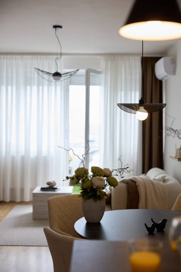 Ide csak be kell költözni! Eladó igényesen felújított, 69 nm-es, berendezett, napfényes, csendes, lakás Pécs kedvelt részén, a Mecsekoldalon. A lakás azonnal költözhető, minden bútora és gépe új, a felújítás óta még nem lakott benne senki! A téglaépítésű, szigetelt társasház 3. emeletén található lakás 2 hálószobás + amerikai konyhás nappalis, két erkéllyel, gyönyörű panorámával a városra. A nappali tágas, világos, erkéllyel kapcsolatos, a nagy hálószobából szintén kiléphetünk a másik erkélyre. Minden helyiség külön nyílik, az elosztása kényelmes és praktikus. A lakás teljes körűen felújított: új burkolatok, új szaniterek, frissen festett falak, csiszolt és lakkozott parketta. A konyha teljesen gépesített, minőségi beépített bútorral, benne: indukciós főzőlap, sütő, mikrohullámú sütő, páraelszívó, hűtő, mosogatógép és kombinált mosó-szárítógép. A hálószobában beépített gardróbszekrény található. A két klíma, a műanyag nyílászárók, a redőnyök és a szúnyoghálók mind a kényelmet szolgálják. Az erkélyek újraburkoltak, szigeteltek, árnyékolóval ellátva. A ház rendezett, tiszta, csendes, a lakóközösség összetartó. A lépcsőház karbantartott, a parkolás ingyenes közvetlenül az épület előtt. A környék nyugodt, zöldövezeti, mégis közel a városhoz. A közelben megtalálható minden fontos szolgáltatás: bevásárlási lehetőség, háziorvosi rendelő, gyógyszertár, bölcsőde, iskola és buszmegálló - mindössze néhány perc sétára. Ez a lakás tökéletes választás azoknak, akik igényes, modern otthont keresnek Pécs egyik legjobb környékén. Ajánlott pároknak, egyedülállóknak, valamint befektetőknek is! Ha fontos Önnek a minőség, a panoráma és a nyugalom, ezt a lakást érdemes megnéznie! További kérdés- és megtekintés esetén keressen bizalommal!