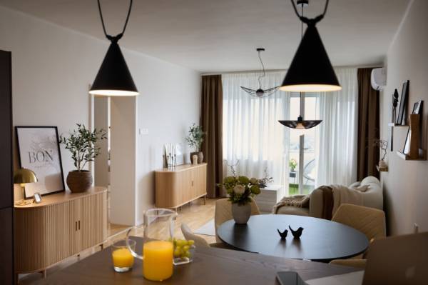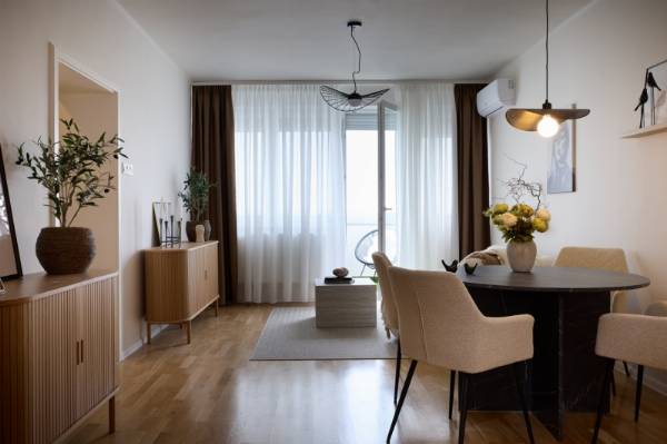 Kiadó igényesen felújított, 69 nm-es, berendezett, napfényes, csendes, lakás Pécs kedvelt részén, a Mecsekoldalon. A lakás azonnal költözhető, minden bútora és gépe új, a felújítás óta még nem lakott benne senki! A téglaépítésű, szigetelt társasház 3. emeletén található lakás 2 hálószobás + amerikai konyhás nappalis, két erkéllyel, gyönyörű panorámával a városra. A nappali tágas, világos, erkéllyel kapcsolatos, a nagy hálószobából szintén kiléphetünk a másik erkélyre. Minden helyiség külön nyílik, az elosztása kényelmes és praktikus. A lakás teljes körűen felújított: új burkolatok, új szaniterek, frissen festett falak, csiszolt és lakkozott parketta. A konyha teljesen gépesített, minőségi beépített bútorral, benne: indukciós főzőlap, sütő, mikrohullámú sütő, páraelszívó, hűtő, mosogatógép és kombinált mosó-szárítógép. A hálószobában beépített gardróbszekrény található. A két klíma, a műanyag nyílászárók, a redőnyök és a szúnyoghálók mind a kényelmet szolgálják. Az erkélyek újraburkoltak, szigeteltek, árnyékolóval ellátva. A ház rendezett, tiszta, csendes, a lakóközösség összetartó. A lépcsőház karbantartott, a parkolás ingyenes közvetlenül az épület előtt. A környék nyugodt, zöldövezeti, mégis közel a városhoz. A közelben megtalálható minden fontos szolgáltatás: bevásárlási lehetőség, háziorvosi rendelő, gyógyszertár, bölcsőde, iskola és buszmegálló - mindössze néhány perc sétára. Dohányzás és kisállat nem megengedett! Két havi kaucó és egy havi bérleti díj megfizetését követően azonnal költözhető! További kérdés- és megtekintés esetén keressen bizalommal!