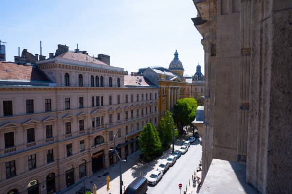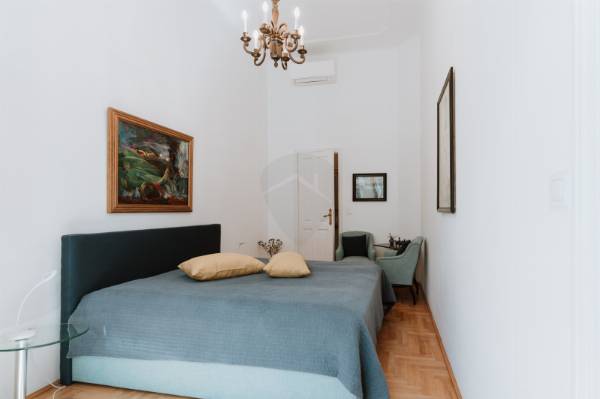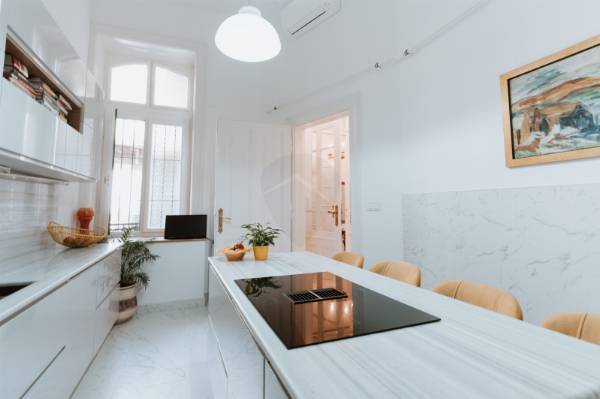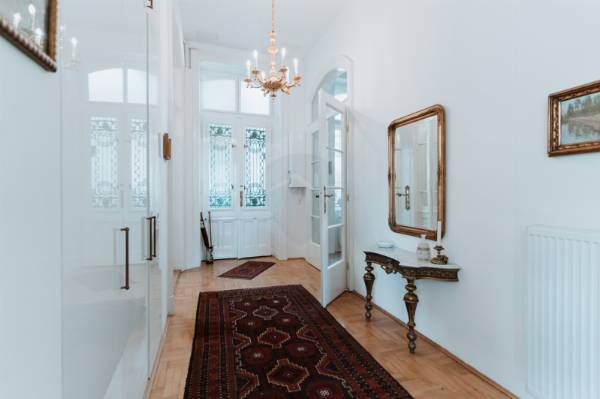 Különleges ajánlat Budapest történelmi belvárosában! A Ferenciek terén, a műemléki védettségű Királyi Bérpalotában kínálunk megvételre egy 176 nm-es (valóságban 183 nm), exkluzívan felújított, nagypolgári lakást. Az épület 1901-ben készült el, Korb Flóris és Giergl Kálmán tervei alapján, a barokk és szecessziós stílus jegyeit ötvözve. Az ingatlan a 3. emeleten található, utcára néző, világos, kelet-délkeleti tájolású, így minden napszakban természetes fénnyel árasztja el a lakótereket.Alapterület: 176 nm (valóságban 185 nm) Elrendezés és jellemzők: Tágas nappali, 4 különnyíló hálószoba Dupla komfort: két fürdőszoba (kád + zuhanyzó), külön WC Nagy belmagasság (4,1 m), amely emeli a térérzetet Elegáns konyha fehér márványpulttal, AEG gépekkel 3 db klíma, riasztórendszer, elektromos redőnyök Megőrzött, felújított antik rézkilincsek, eredeti beltéri nyílászárók Tárolóhelyiség tartozik hozzá Közös költség: 49.900 Ft/hó Műszaki tartalom: Az ingatlan 5 évvel ezelőtt teljeskörű felújításon esett át: Fűtésrendszer: Viessmann kazán Elektromos hálózat és vízvezeték teljes cseréje Minőségi burkolatok, olasz konyhabútor Műanyag és felújított fa nyílászárók kombinációja Lokáció és környezet: Az ingatlan a belváros egyik legfrekventáltabb pontján, a Ferenciek tere, Váci utca, Erzsébet híd közvetlen közelében található. A környéket kulturális, gasztronómiai és vásárlási lehetőségek, valamint több ötcsillagos szálloda öleli körbe. A lakás ablakaiból örök panoráma nyílik a Ferenciek templomára és a Ybl-palotára. Közlekedés: M3 metró Számos buszjárat (5, 7, 8E, 108E stb.) Duna-part, sportolási lehetőségek 3 perc sétára Több mélygarázs a közelben | Kerületi lakosként ingyenes parkolás Ajánljuk: Családoknak, akik szeretik a tágas tereket Cégközpontnak, irodának reprezentatív környezetben Befektetőknek, akik értékálló, kiadható belvárosi ingatlant keresnek Amennyiben felkeltette érdeklődését ez az egyedülálló ingatlan, kérem hívjon bizalommal akár hétvégén is!