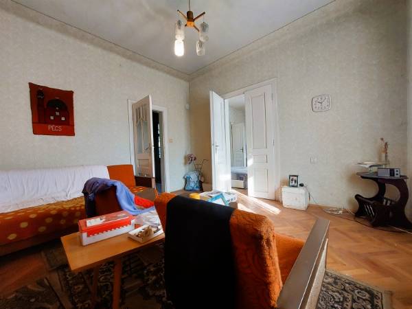 Eladó családi ház Pécs–Szabolcsfalu csendes, nyugodt részén! Eladásra kínálok egy háromszobás, tégla építésű, felújítandó családi házat, amely 2152 m²-es sík telken helyezkedik el, Pécs, Szabolcsi úton. Az ingatlan valós alapterülete 80 m², elosztása jól alakítható és praktikus megoldásokat kínál. A házban három szoba található, melyek közül az egyikhez erkély tartozik. Emellett van egy fürdőszoba és WC egyben, egy konyha, kamra, valamint egy tágas előszoba, amelyből a helyiségek kényelmesen megközelíthetők. A főépülethez több melléképület is kapcsolódik: nyári konyha, garázs, két tároló helyiség, szuterén és pince, amelyek sokoldalúan hasznosíthatók. A garázson kívül az udvaron további két autó számára is elegendő parkolóhely áll rendelkezésre, a ház előtt pedig az utcai parkolás díjmentes, így vendégek számára is egyszerűen megoldható a megállás. A ház fűtése gázkonvektorral megoldott, a gáz be van vezetve, a gázóra jelenleg leszerelt, így új bekötés szükséges. A melegvíz-ellátást villanybojler biztosítja. A nagy méretű, sík telek kiváló lehetőséget nyújt gazdálkodásra, vállalkozásra vagy további fejlesztésre is. A telken gyümölcsfák, ásott kút is található (jelenleg lefedve). Emellett fóliasátor fém szerkezete is rendelkezésre áll. A telek alsó és felső utcáról egyaránt megközelíthető. Az ingatlan Pécs–Szabolcsfalu rendezett, családi házas övezetében helyezkedik el, ahol minden fontos szolgáltatás könnyen elérhető. A közelben bolt, óvoda, iskola és buszmegálló található, a városközpont pedig néhány percen belül megközelíthető. A ház fiatal pároknak, kisgyermekes családoknak vagy befektetőknek is ideális választás lehet, hiszen jó elhelyezkedésének és nagy telkének köszönhetően számos lehetőséget rejt magában. Igény esetén hitelügyintézésben és ügyvédi háttér biztosításában is tudunk segítséget nyújtani. Tekintse meg személyesen ezt a remek adottságú ingatlant — hívjon bizalommal!