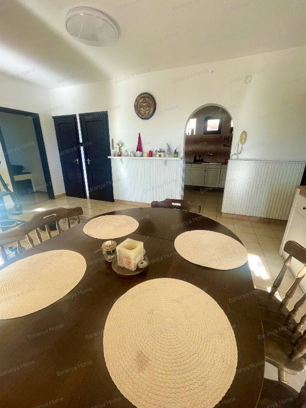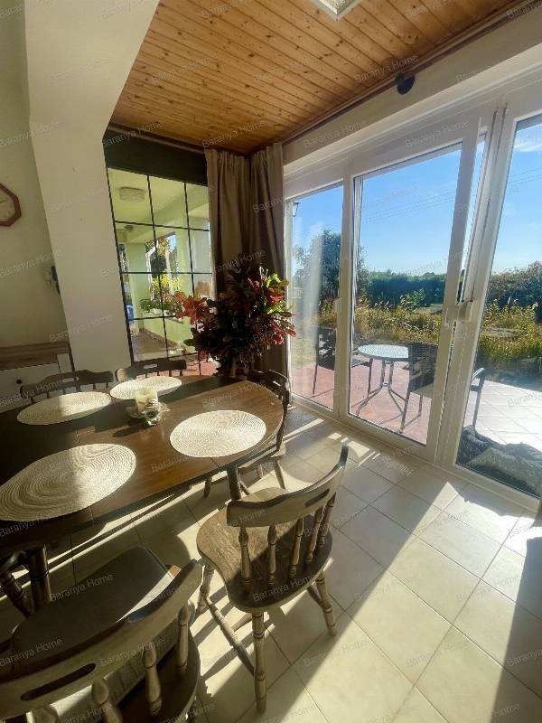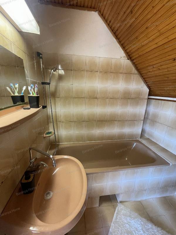 Eladó Pogányban, ez a cca 900 nm-es telken fekvő, belső kétszintes, bruttó 153 nm-es (nettó 150 nm), tégla építésű családi ház! A sík, körbekerített, gondozott telken, a termő gyümölcsfák mellett fillagóriát, egy 100 nm-es, jó állapotú melléképületet (3x16A), garázst is találunk. Az épület tiszta téglaépítésű, fűtéséről a gázkazán mellett egy vegyestüzelésű kazán is gondoskodik, radiátor hőleadókkal. A hűtését, a felső szinten, egy 5 kw-os klíma biztosítja, a ház melegvízellátását pedig villanybojler. Elrendezés Alsó szint: - előszoba + lépcsőház - 2 szoba - tusolós fürdő - külön wc - szeparált konyha - nappali üvegtornáccal a teraszra (déli tájolás) Felső szint: - közösségi tér erkéllyel (déli tájolás) - 2 szoba - kádas fürdő - külön wc Az ingatlan szerkezetileg kifogástalan állapotú, nincs vizesedés, beázás, falrepedés stb... Modernizálással, egy nagycsaládosoknak is mindent kielégítő méretű családi otthon varázsolható belőle! Az ingatlan saroktelken helyezkedik el, szomszédoktól jól elhatárolva, Pogány csendes, átmenőforgalomtól mentes, nyugodt utcájában! Otthonstart programra, otthonteremtési kedvezményekre, támogatásokra alkalmas, hitelezhető! Az ár, irányár!